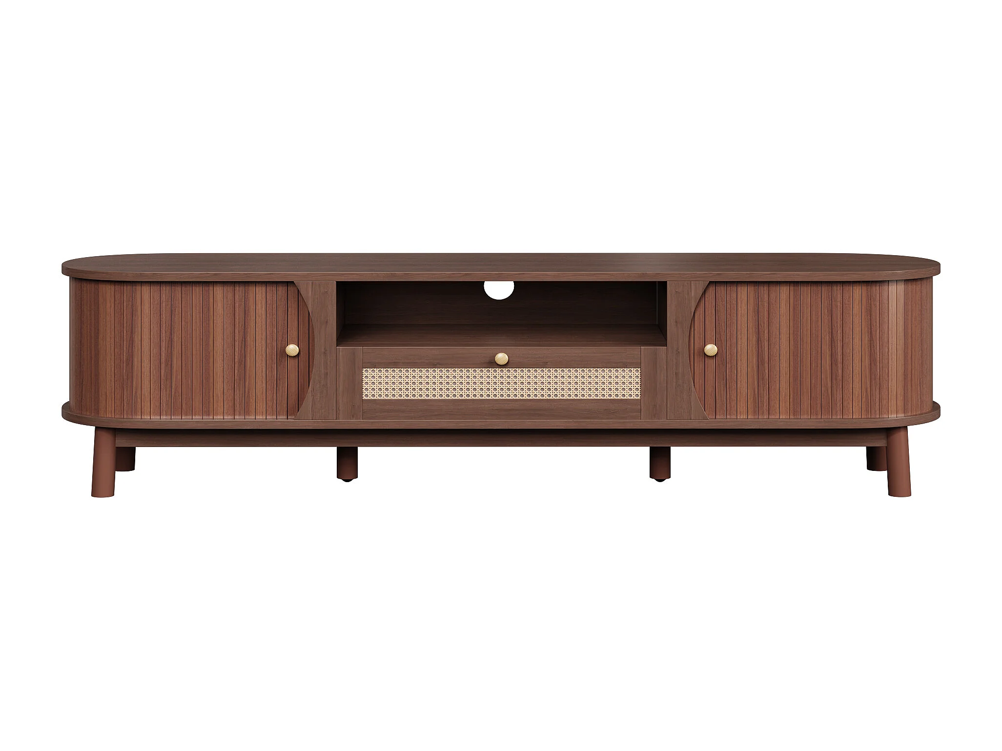 TV-Schrank aus Rattan 165x37x46 cm - 2 Türen und 1 Schublade aus Rattan - Landhausstil - MDF - Braun