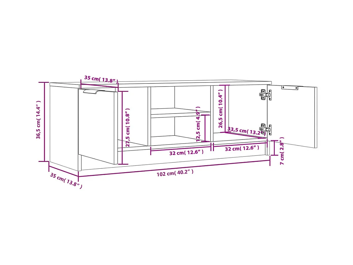 TV-Schrank Betongrau 102x35x36,5 cm Holzwerkstoff