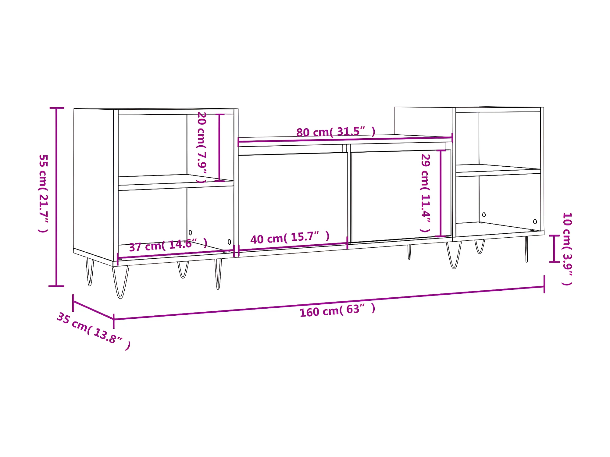 TV-Schrank Betongrau 160x35x55 cm Holzwerkstoff
