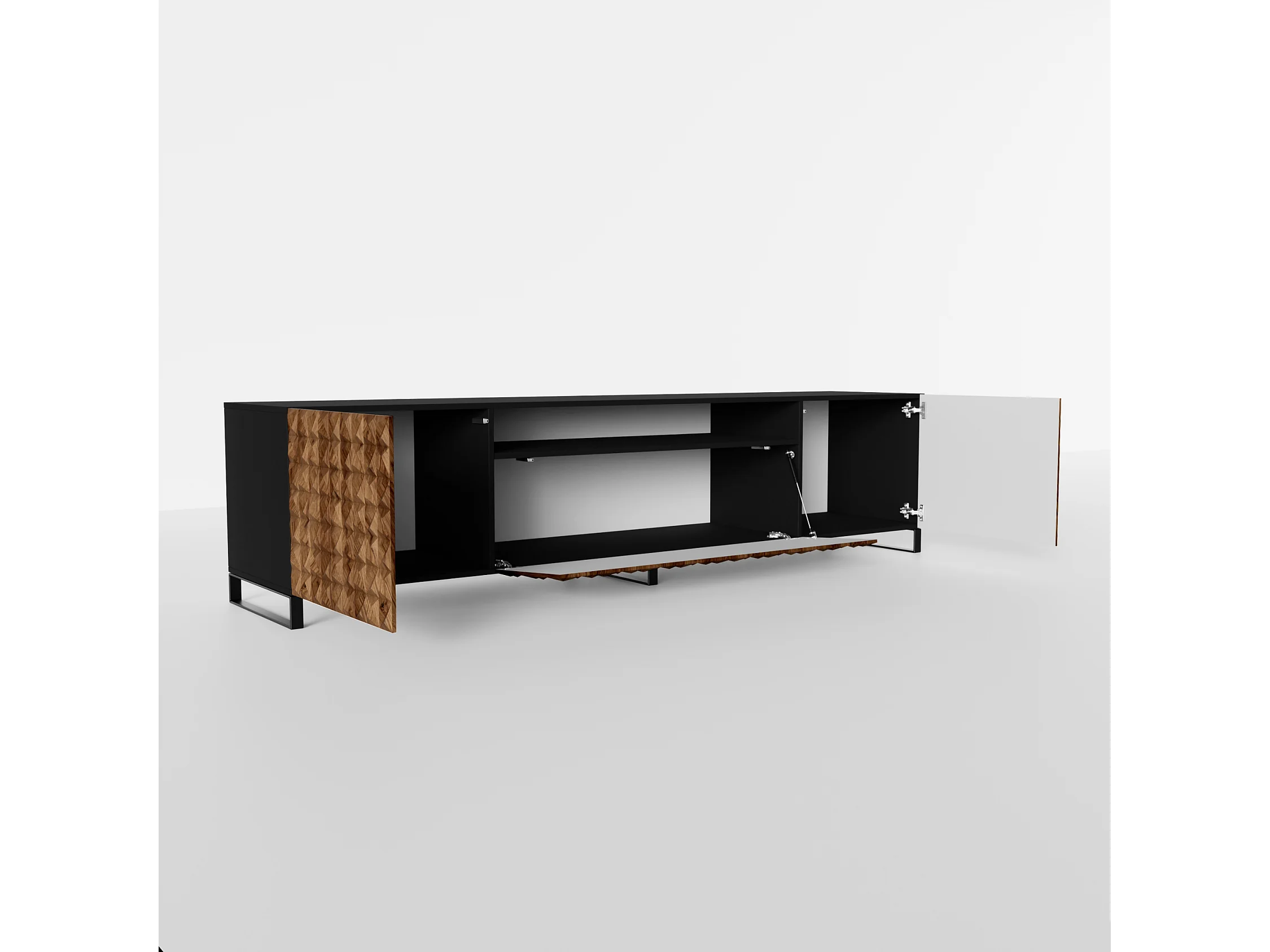 TV-Schrank Cali III Fernsehschrank TV-Lowboard 200 cm Fronten gefräst wie ein Kaleidoskop modernes Design dreitürig (Farbe: schwarz, catania)