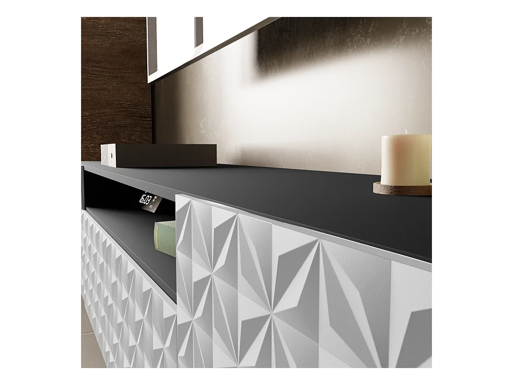 TV-Schrank Cali III Fernsehschrank TV-Lowboard 200 cm Fronten gefräst wie ein Kaleidoskop modernes Design dreitürig (Farbe: schwarz, weiß)