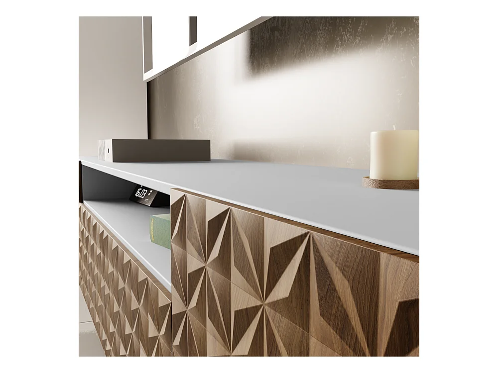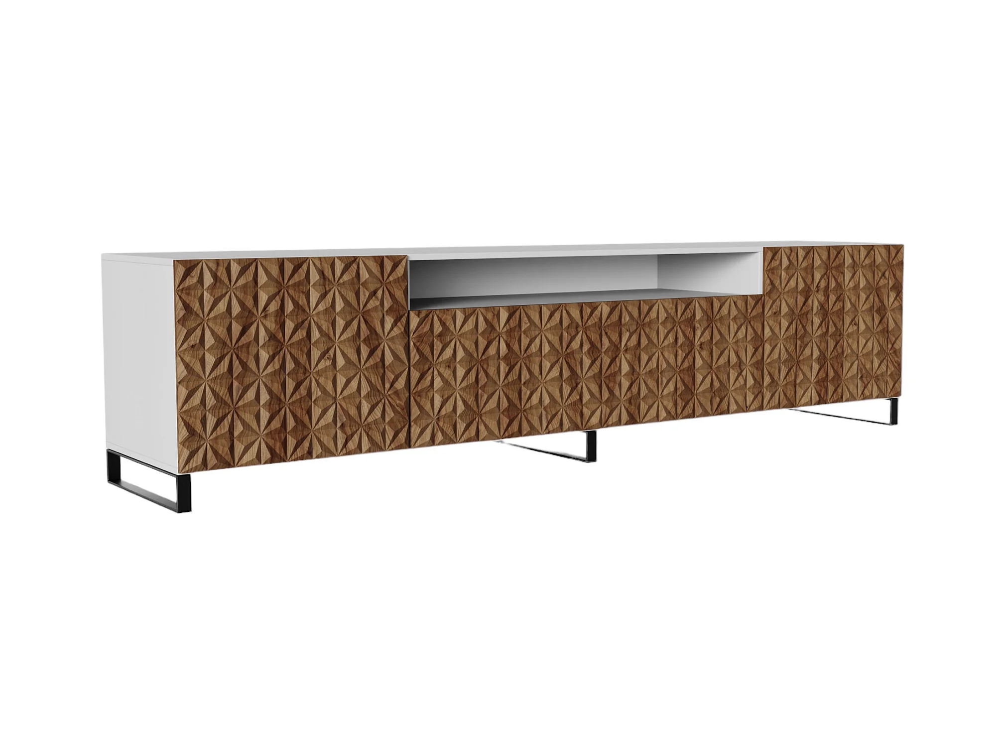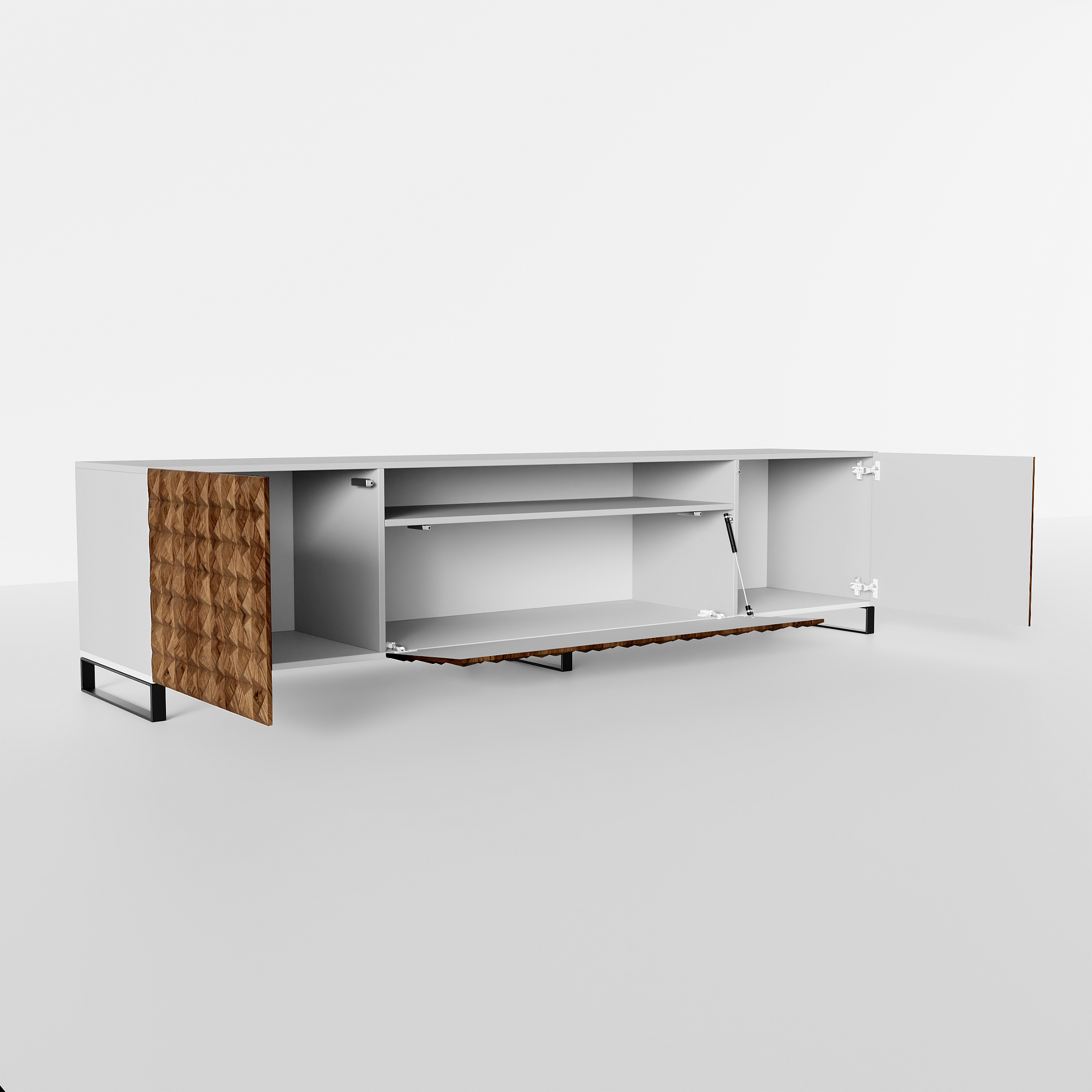 TV-Schrank Cali III Fernsehschrank TV-Lowboard 200 cm Fronten gefräst wie ein Kaleidoskop modernes Design dreitürig (Farbe: weiß, catania)