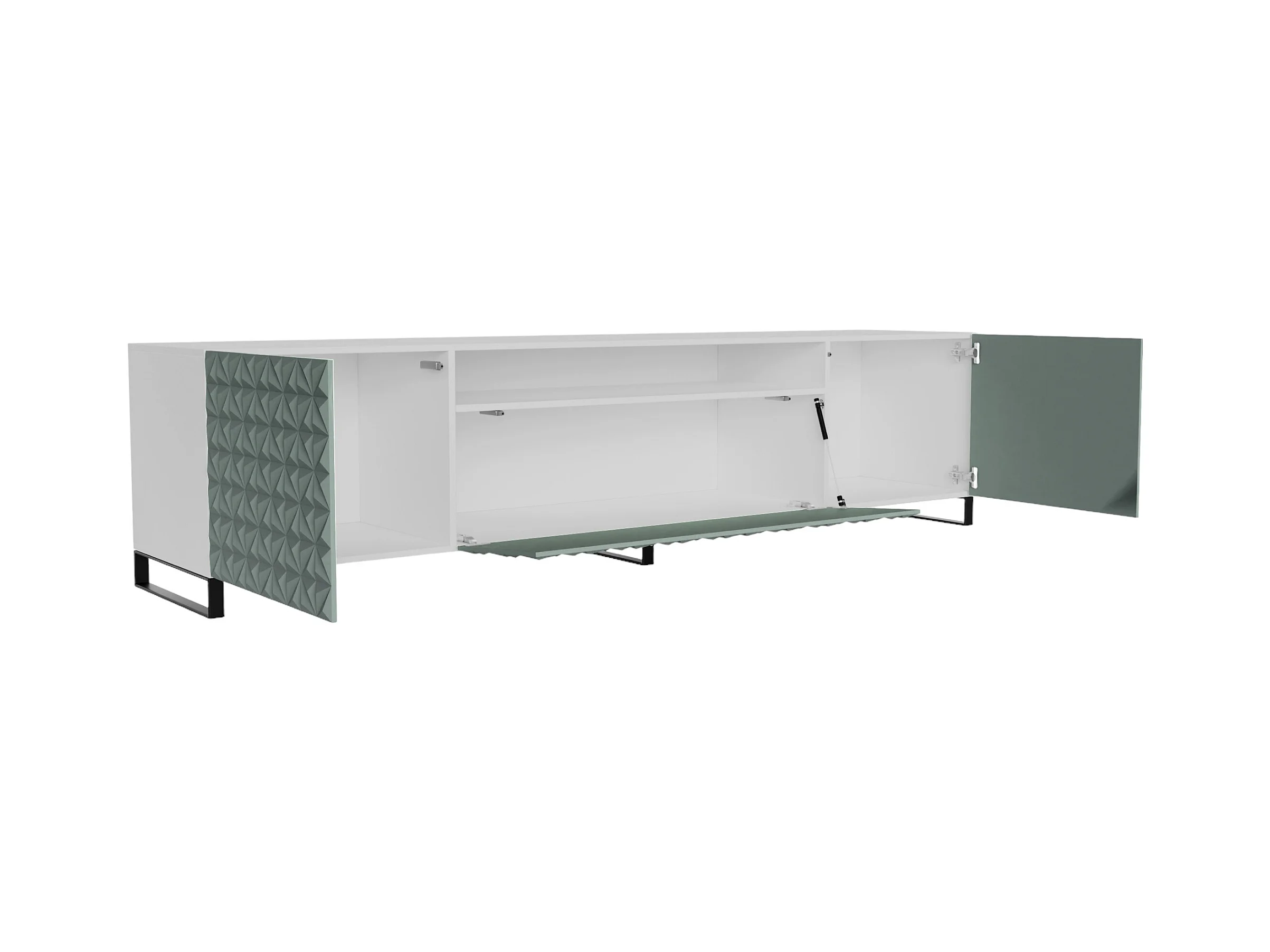 TV-Schrank Cali III Fernsehschrank TV-Lowboard 200 cm Fronten gefräst wie ein Kaleidoskop modernes Design dreitürig (Farbe: weiß, grün)