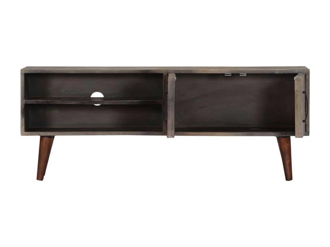 TV-Schrank Grau 130x30x46 cm Raues Mango-Massivholz