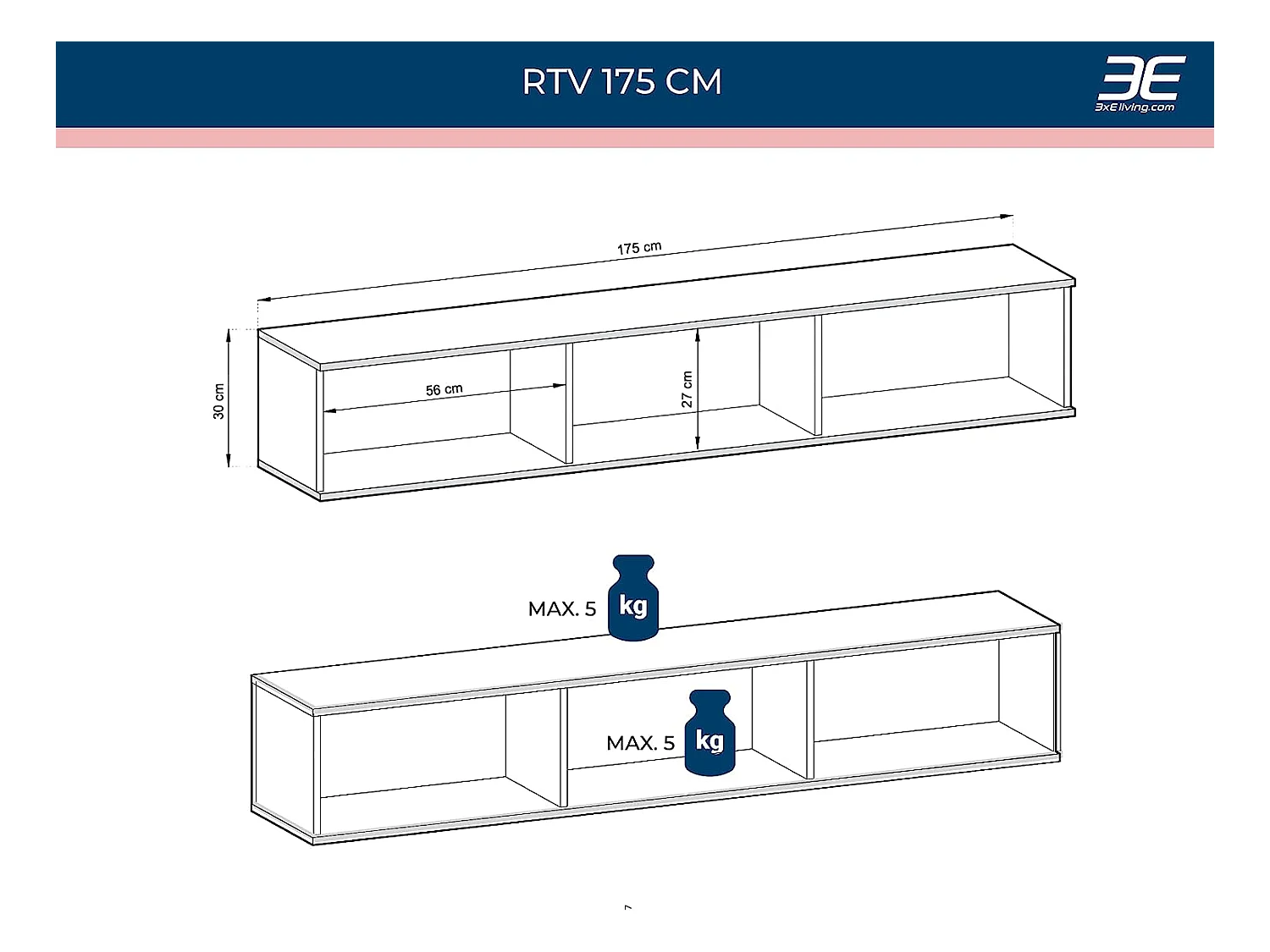 TV-Schrank, Grau, 175 x 30 x 32 cm, Push to Open