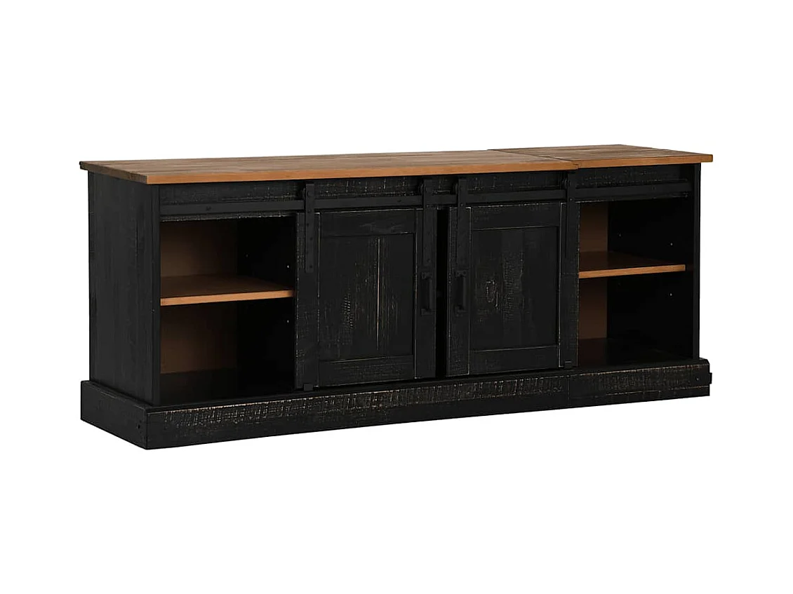 TV-Schrank HALDEN 2 Schiebetüren Schwarz 150x40x60cm Massivholz