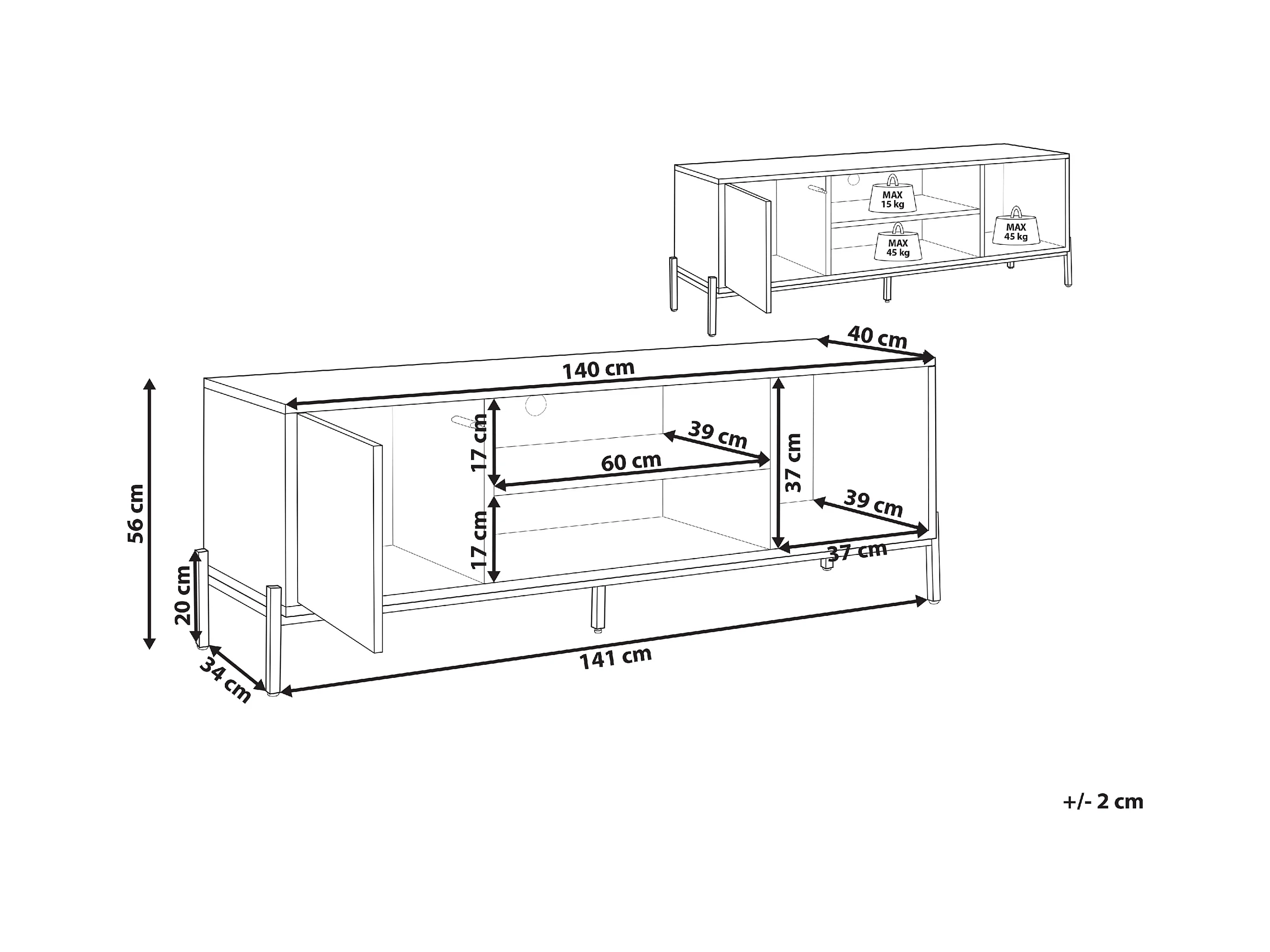 TV Ständer 1 Tür Aufbewahrung Flachbrett 2 Offene Regale Helles Holz und Grau Moines