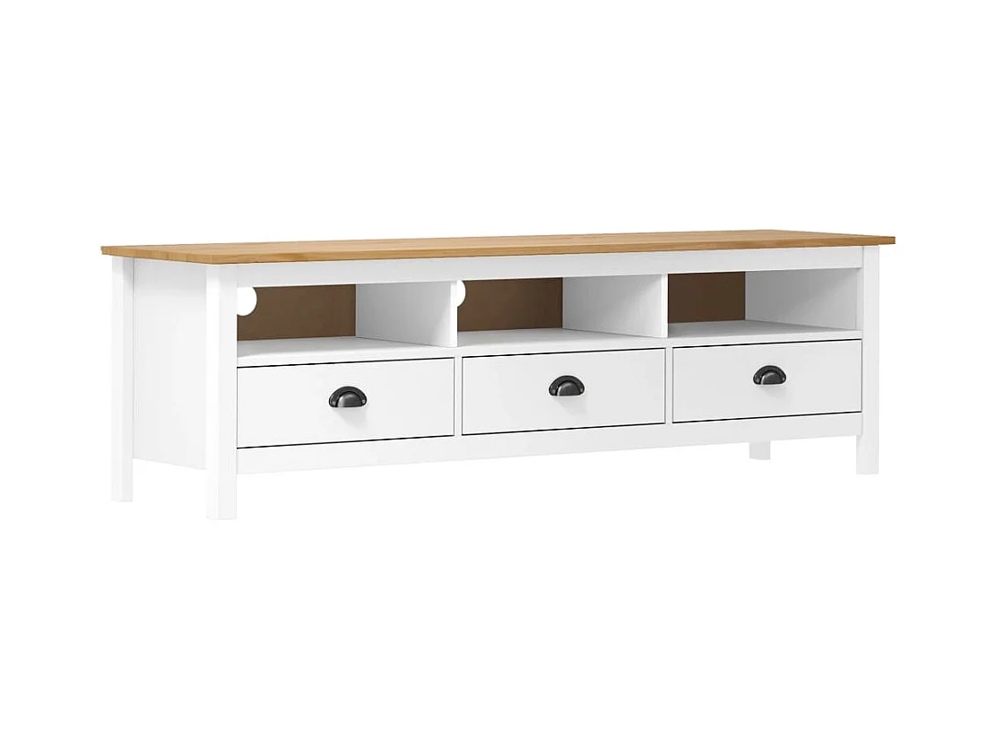 TV-Schrank Hill Weiß 158x40x47 cm Massivholz Kiefer