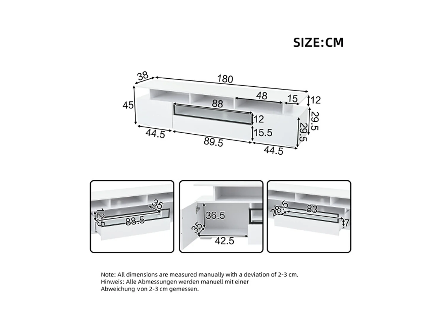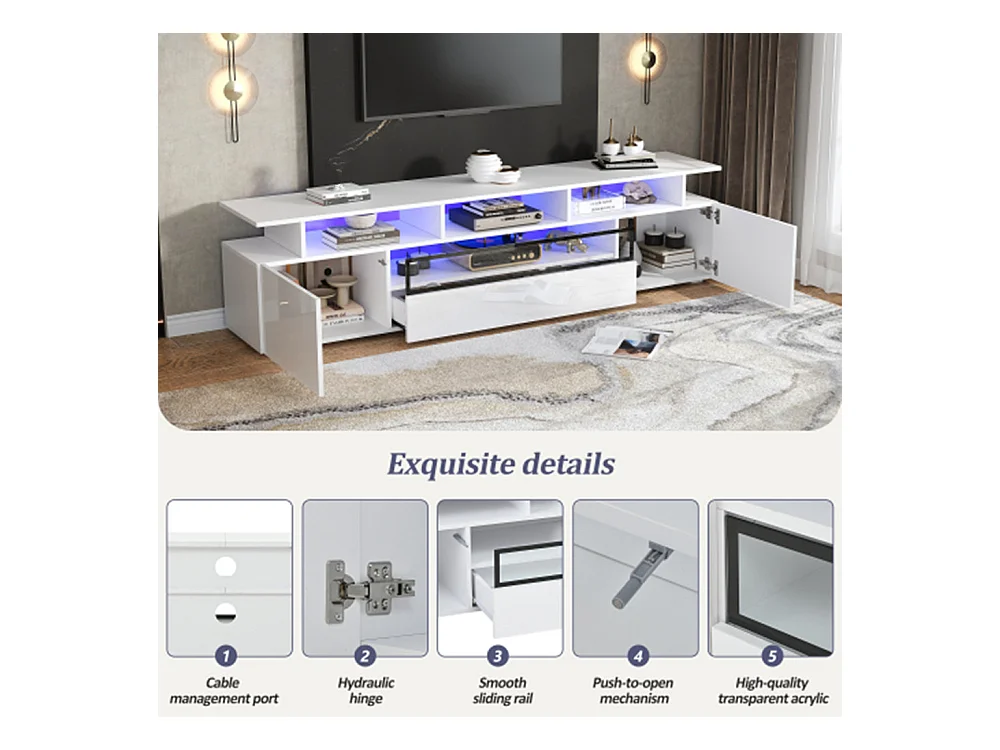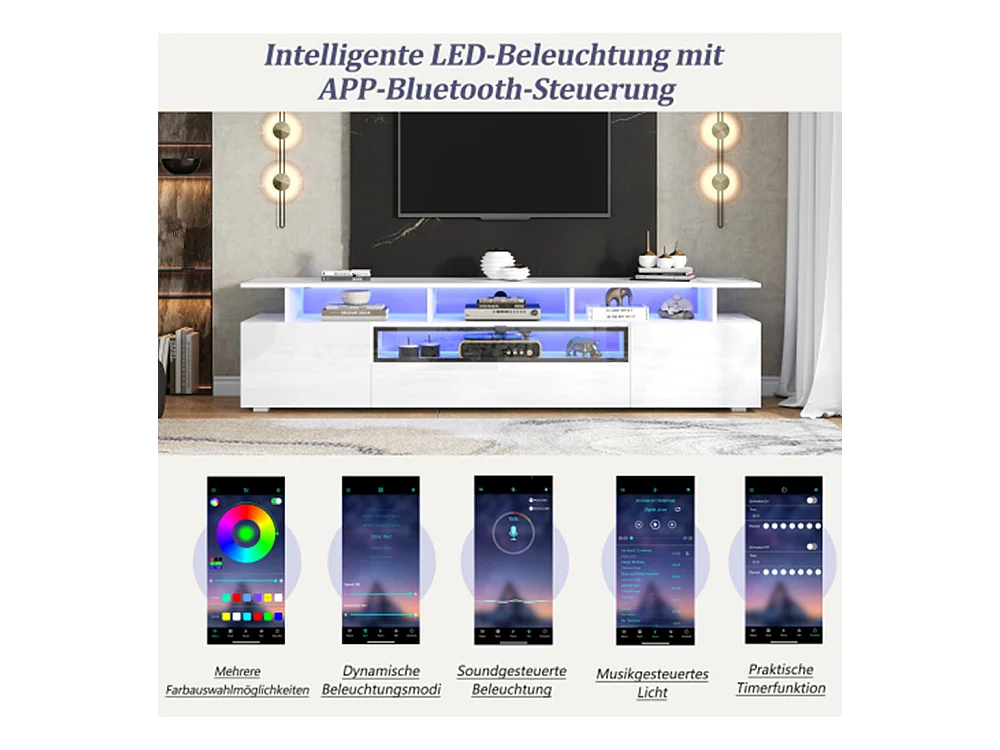TV-Schrank,Hochglanz-TV-Ständer mit 2 Schränken und 1 Schublade,Lowboard Mit LED, passend für Fernseher um die 75 Zoll 180*38*45cm