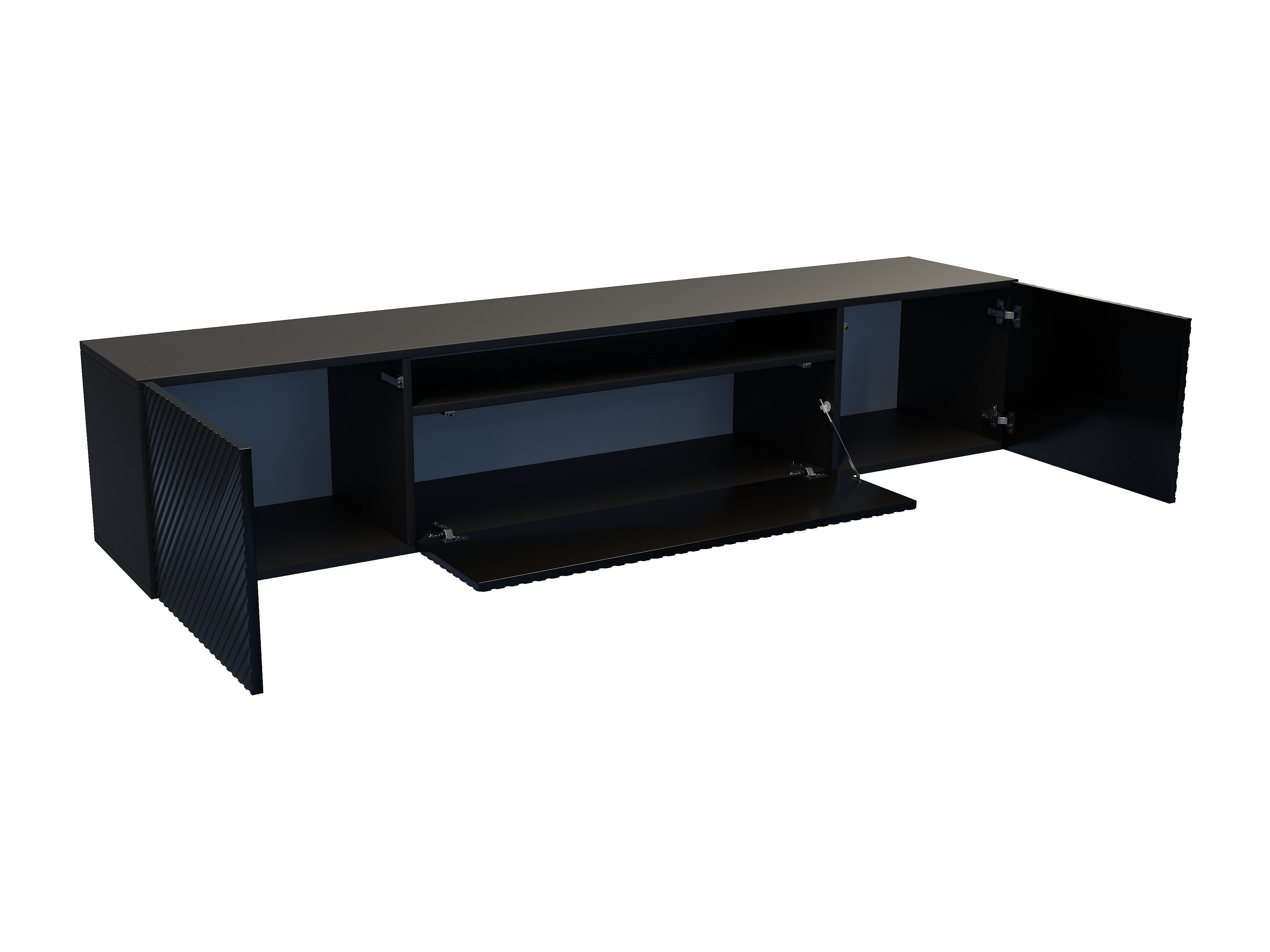 TV-Schrank Kaja Fernsehschrank TV-Lowboard 200 cm gefräste Fronten modernes Design dreitürig Wohnzimmer Wandmontage (Farbe: schwarz )