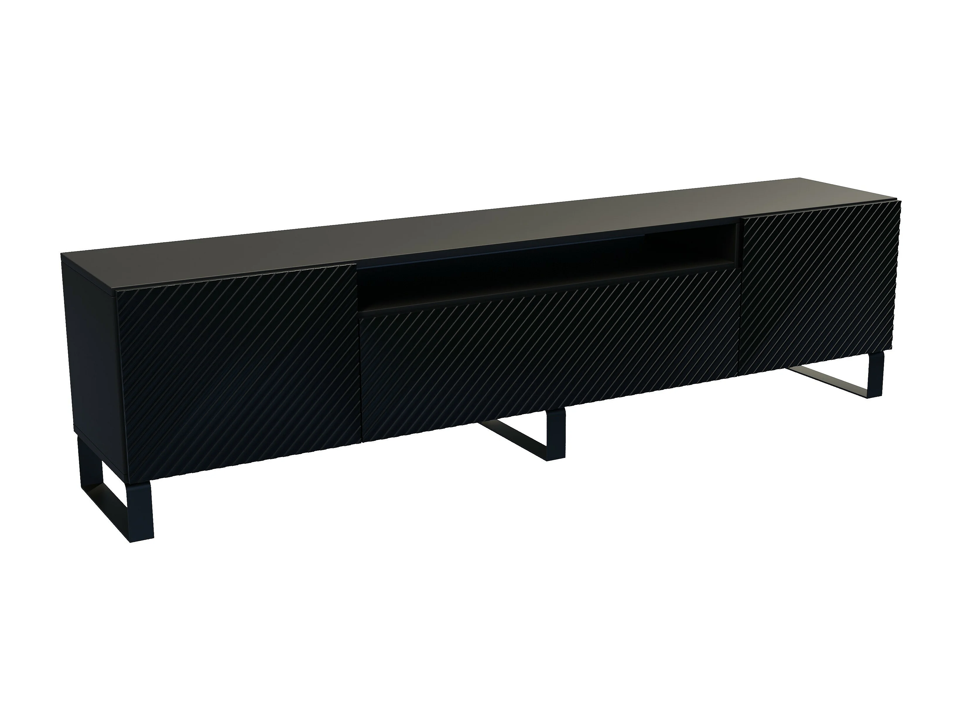 TV-Schrank Kaja III Fernsehschrank TV-Lowboard 200 cm gefräste Fronten modernes Design dreitürig Wohnzimmer (Farbe: schwarz )