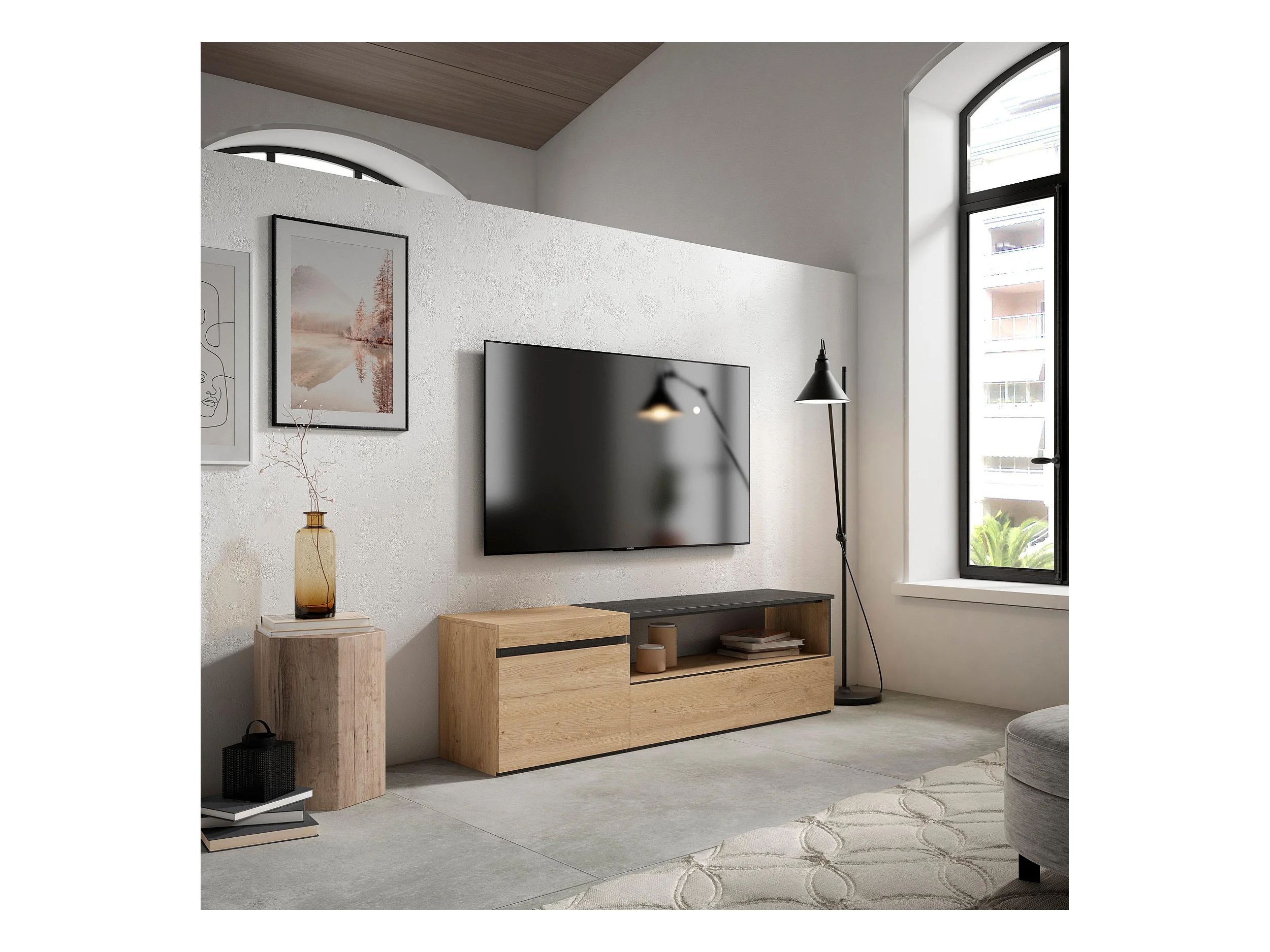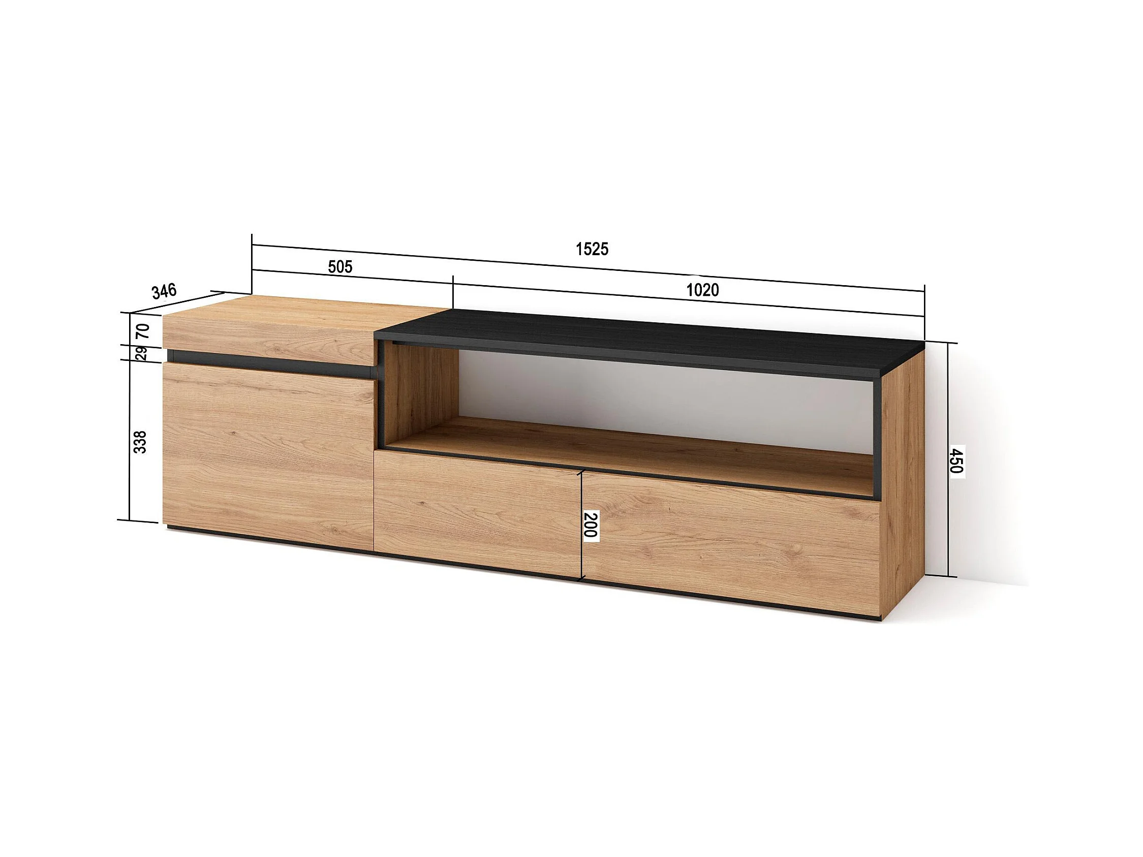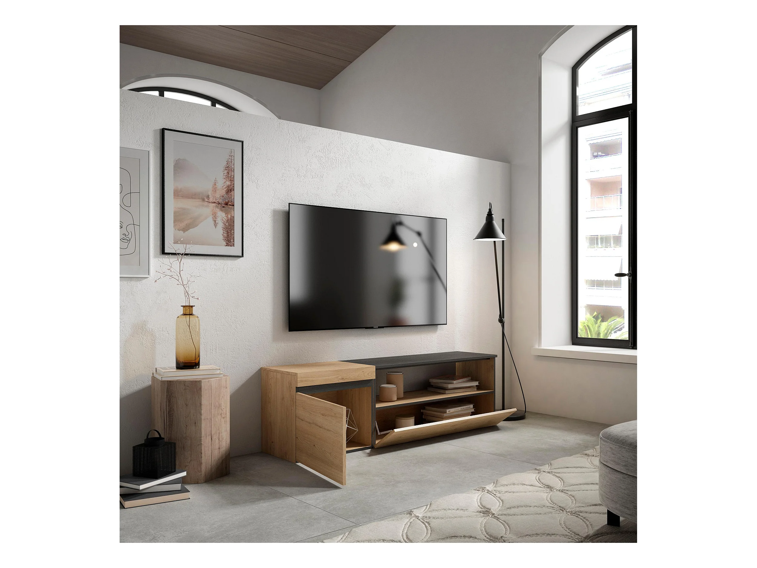 TV-Schrank, Lowboard, 150x35x45cm, Für TV-Geräte bis zu 65", Fernsehtisch, Eiche Schwarz
