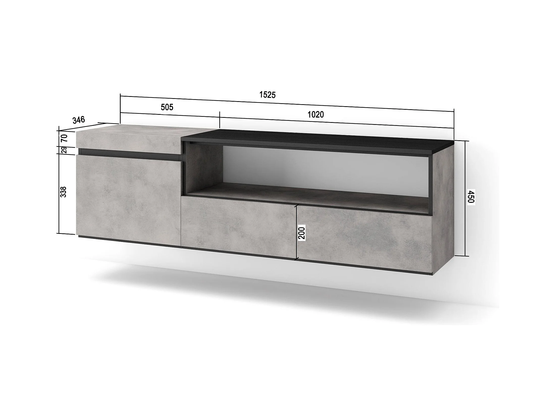 TV-Schrank, Lowboard, 150x35x45cm, Für TV-Geräte bis zu 65", Hängend, Zement