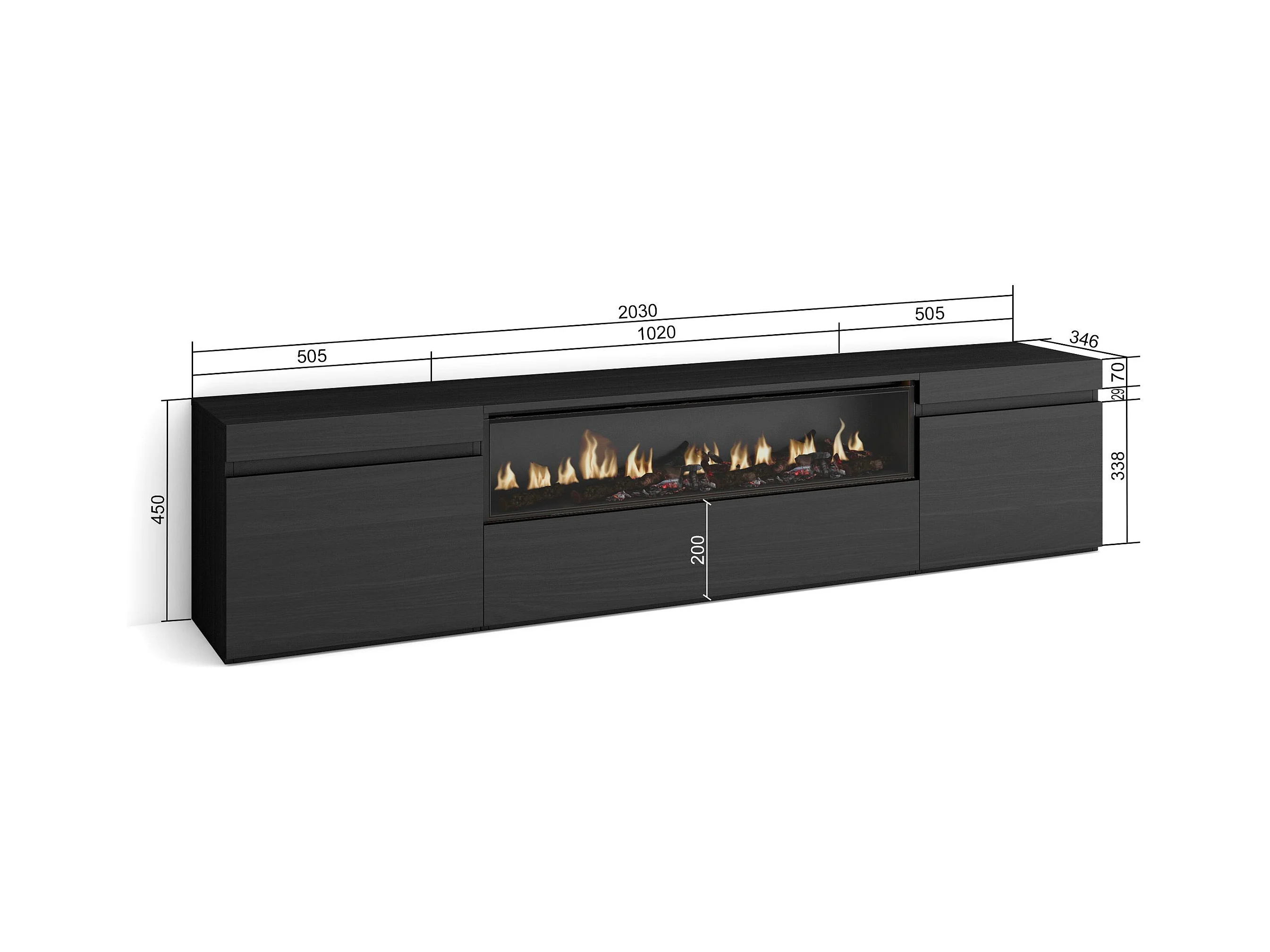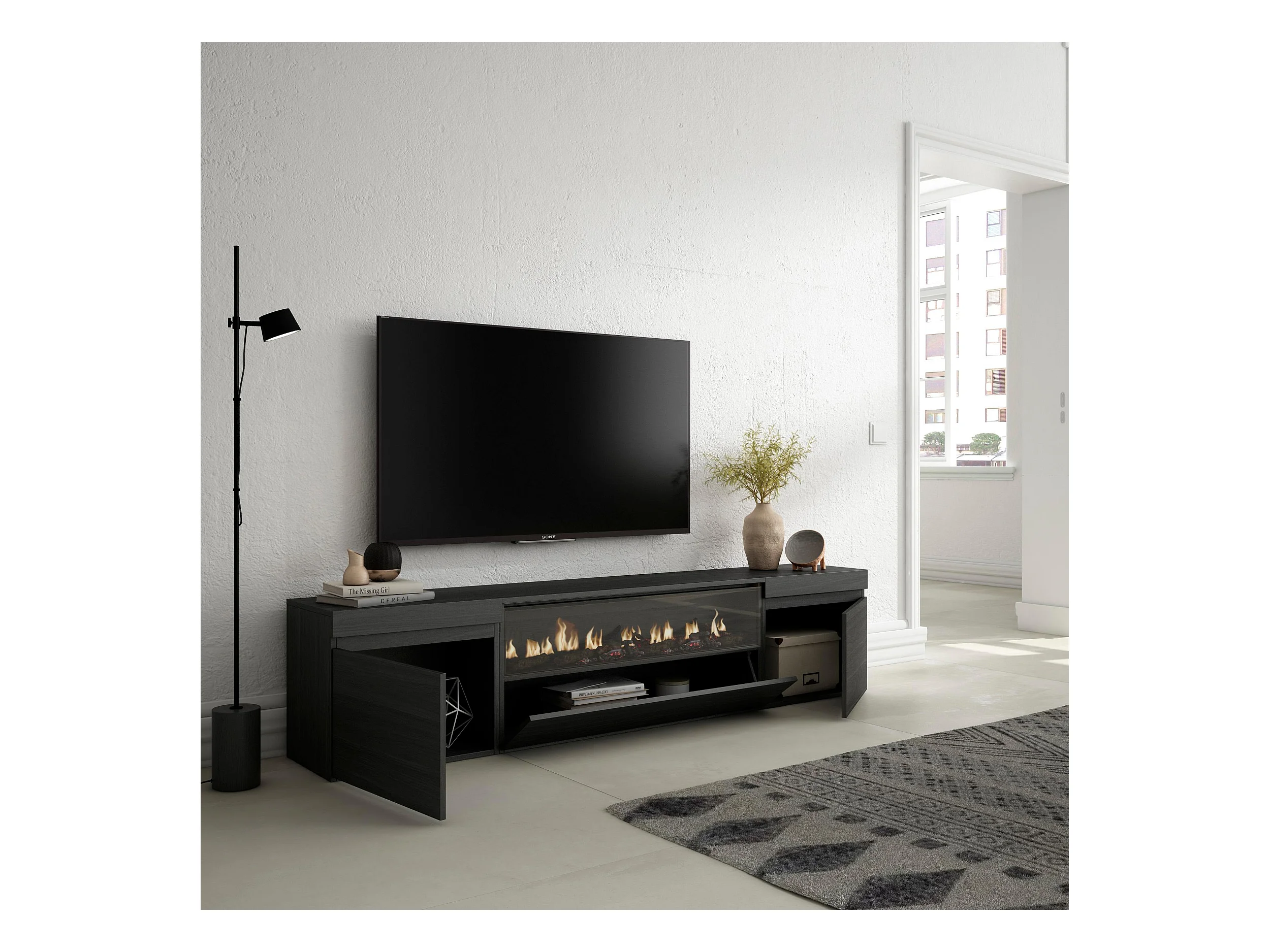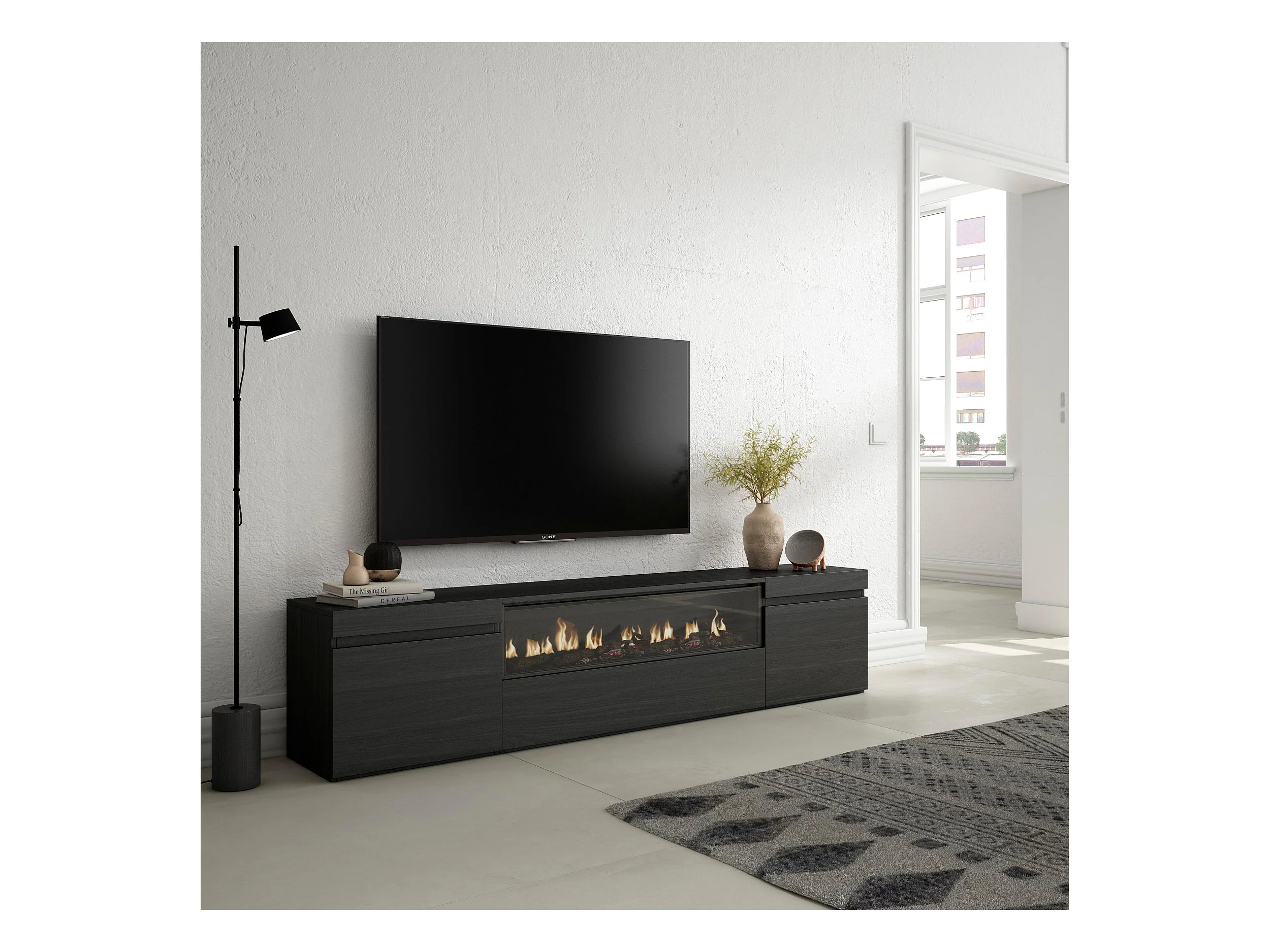 TV-Schrank, Lowboard, 200x35x45cm, Für TV-Geräte bis zu 80", Elektrokamin, Schwarz