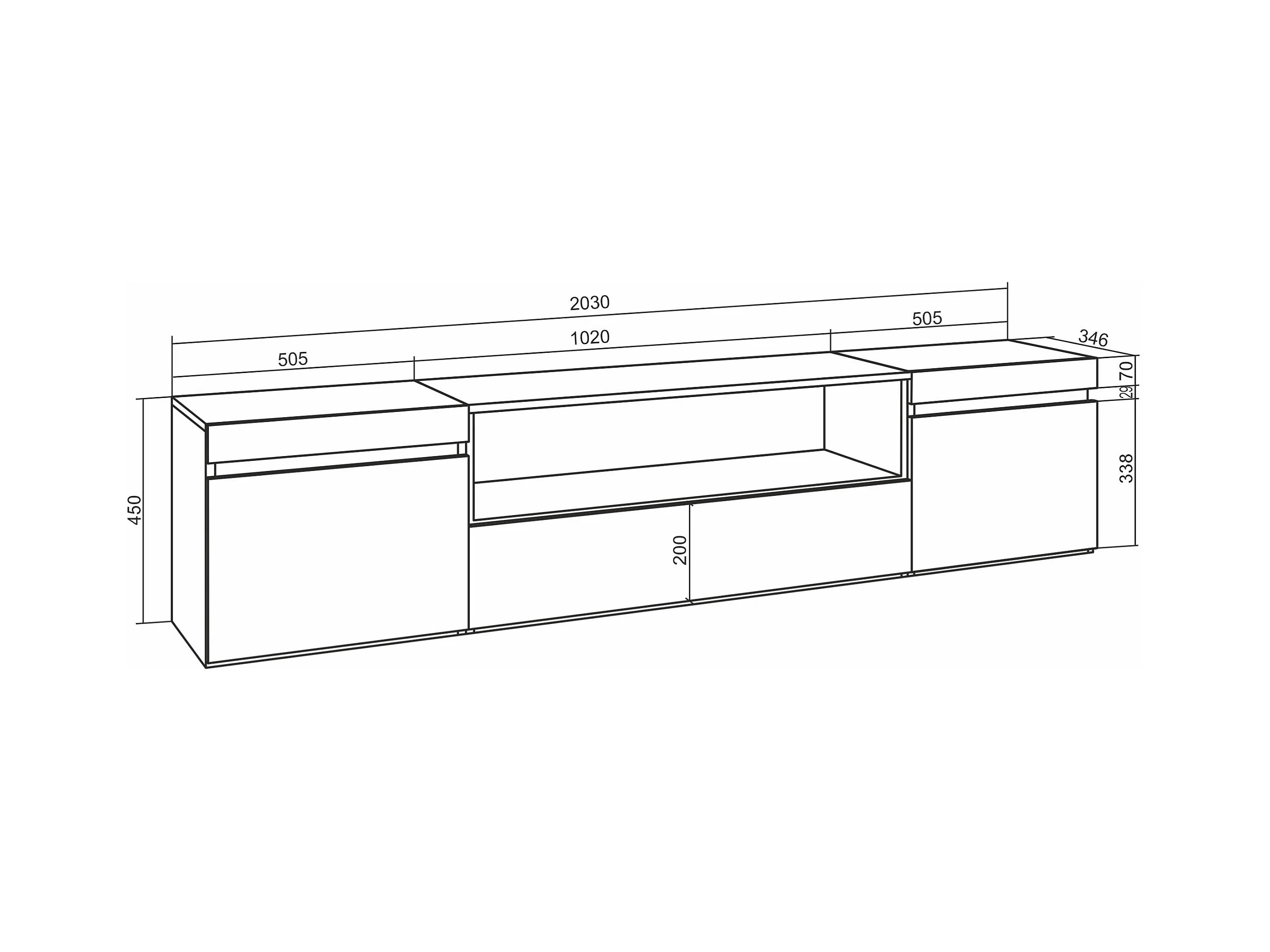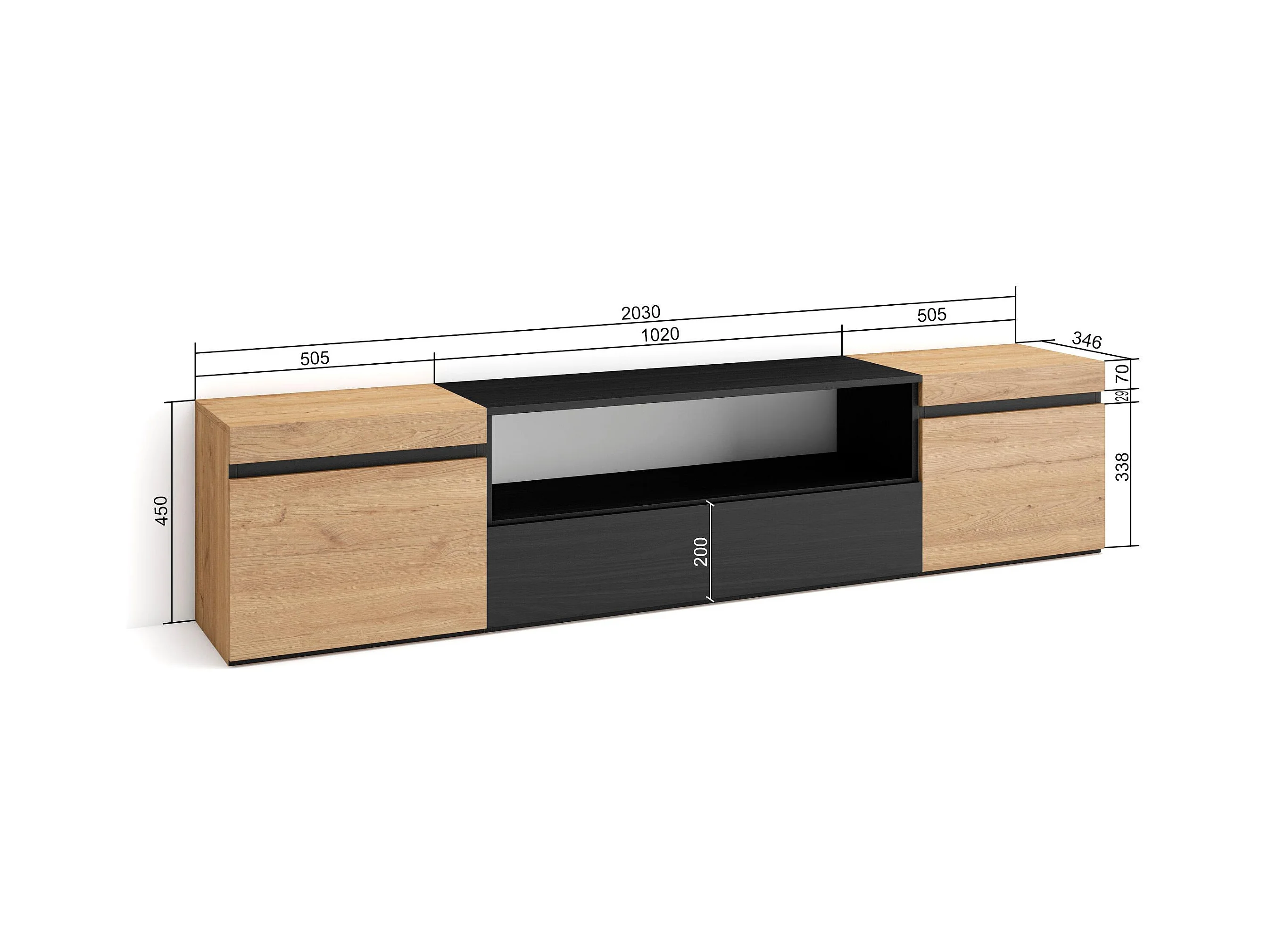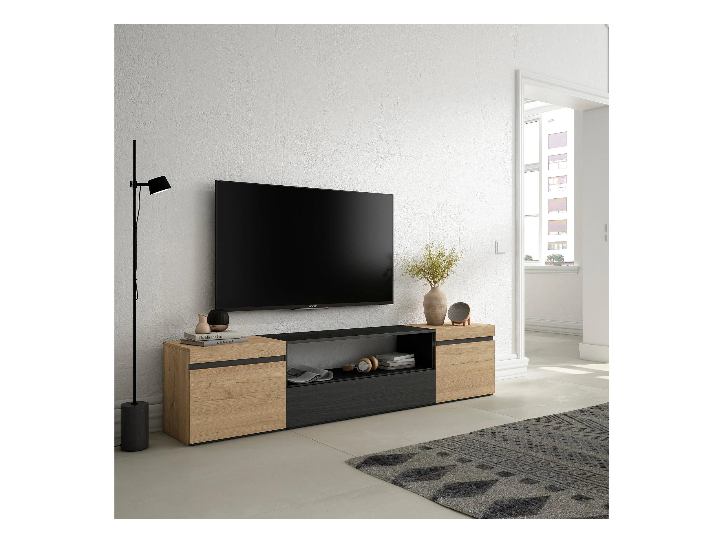 TV-Schrank, Lowboard, 200x35x45cm, Für TV-Geräte bis zu 80", Fernsehtisch, Eiche Schwarz