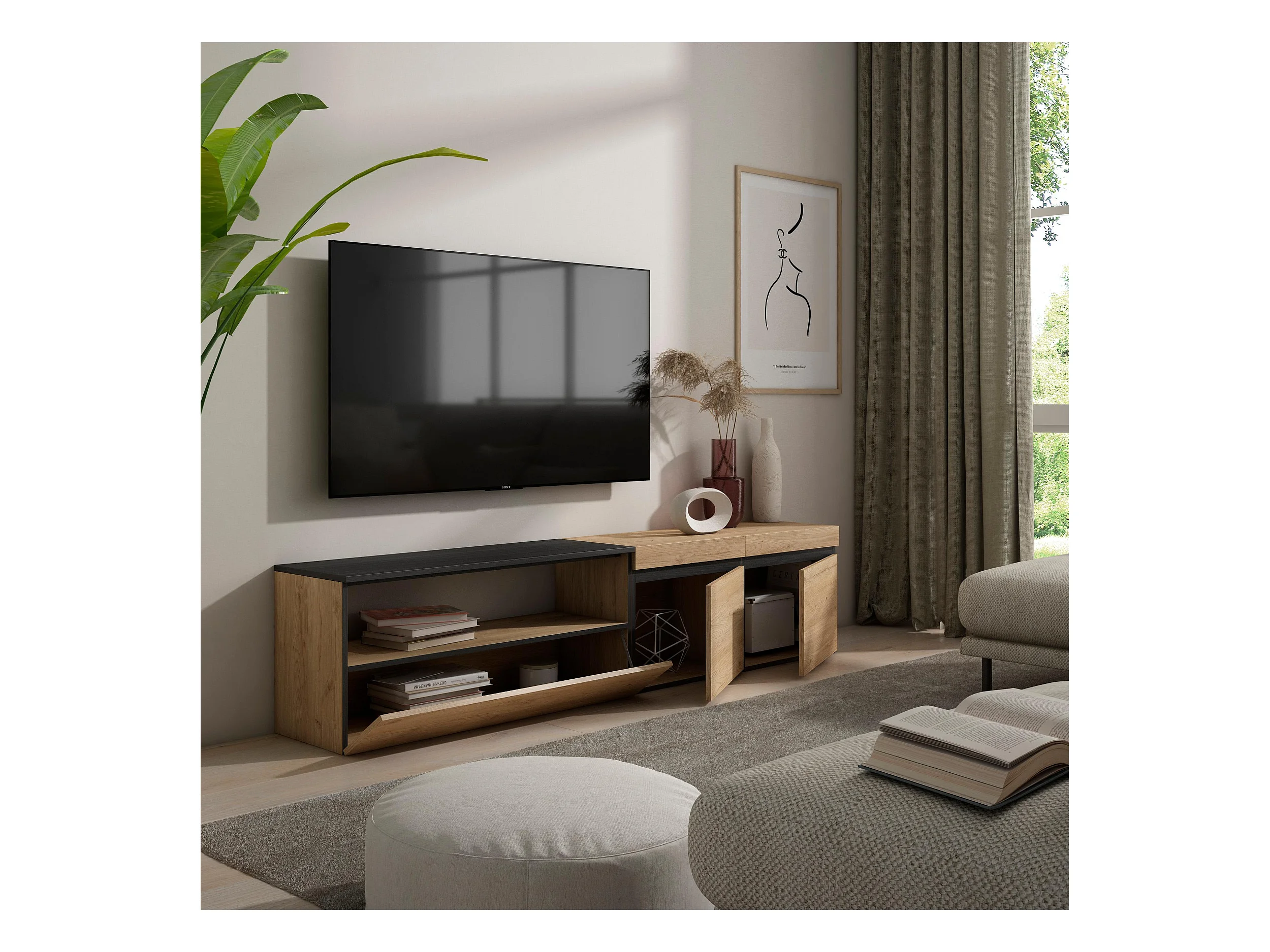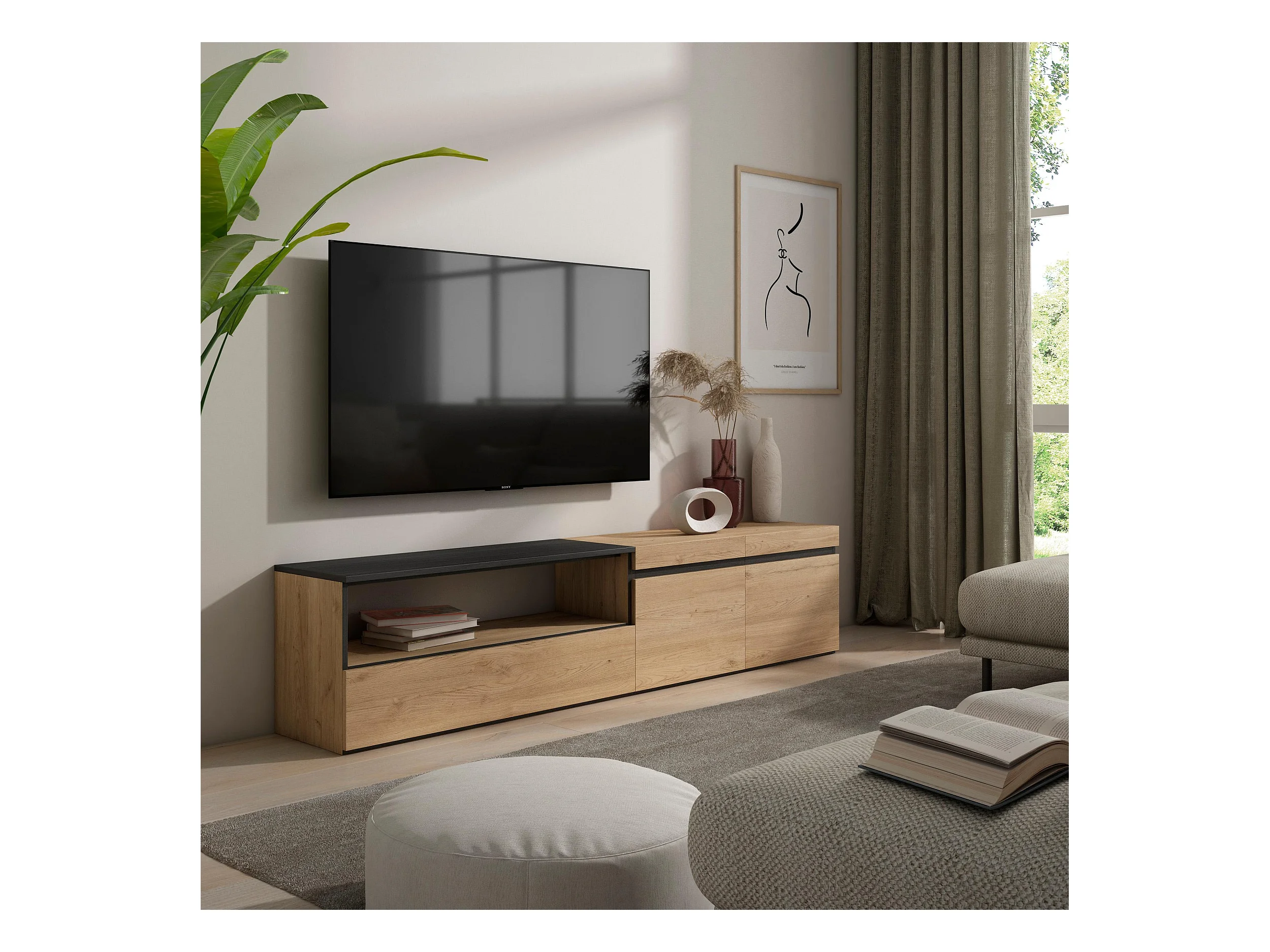 TV-Schrank, Lowboard, 200x35x45cm, Für TV-Geräte bis zu 80", Fernsehtisch, Eiche Schwarz