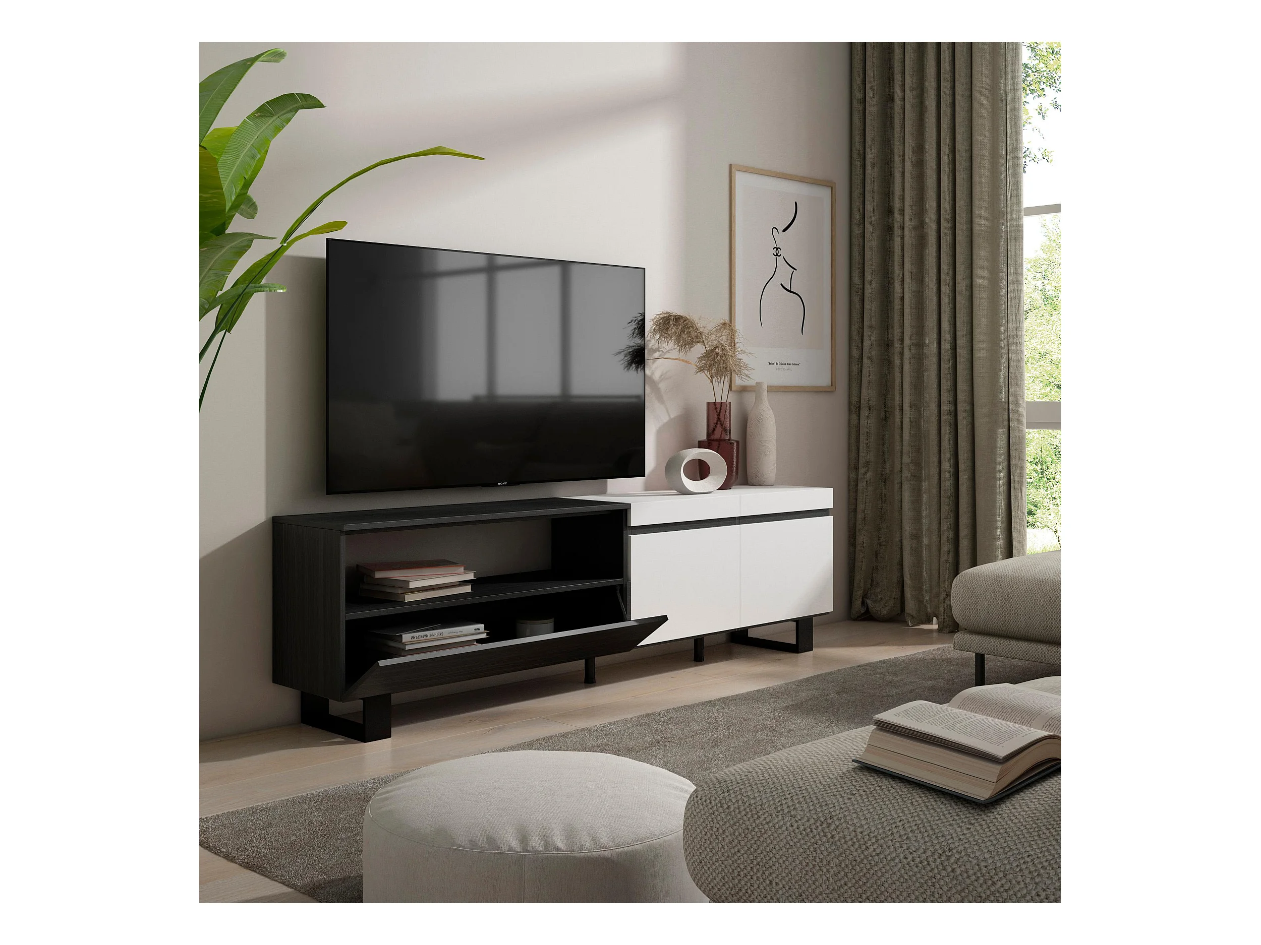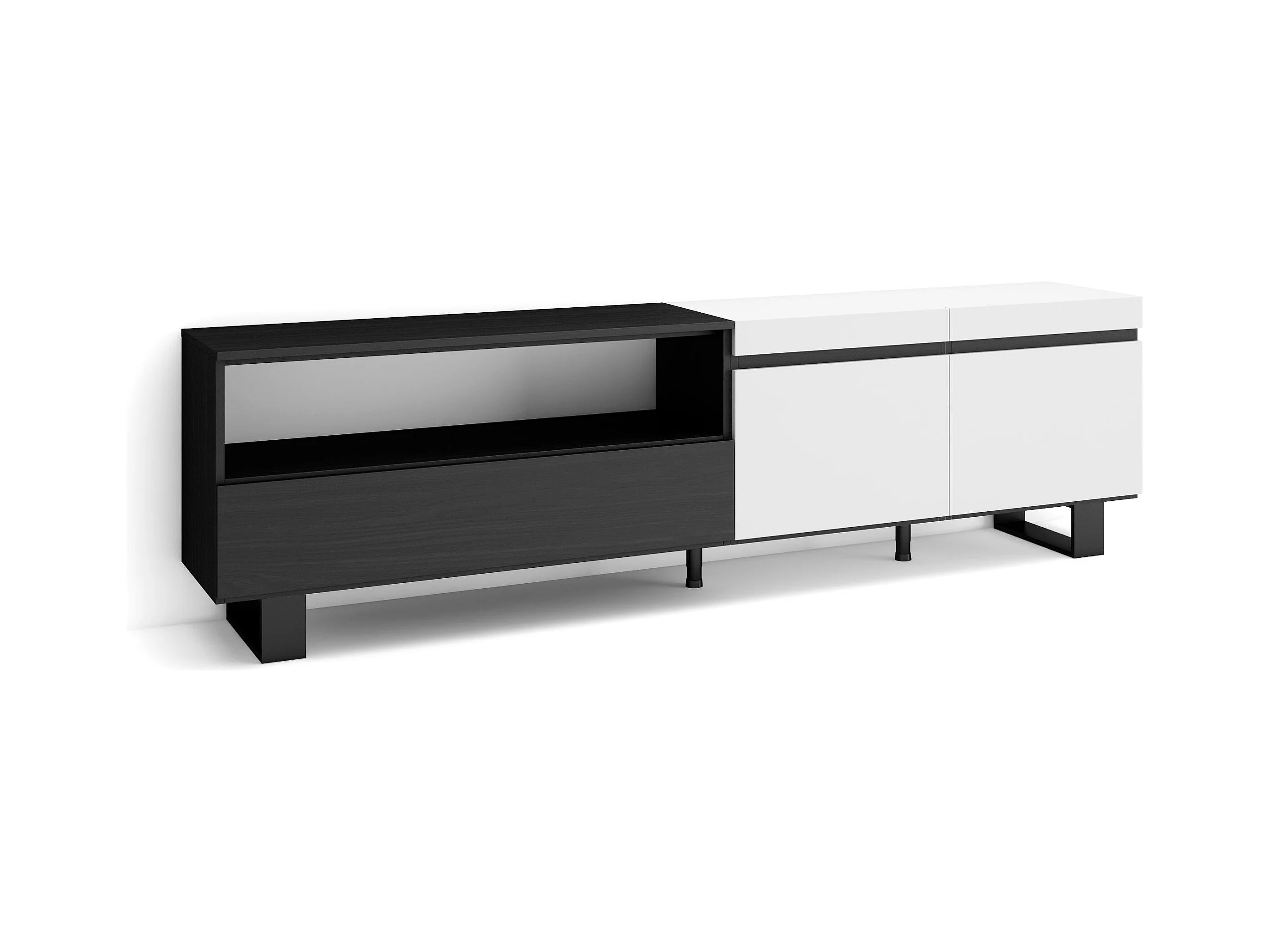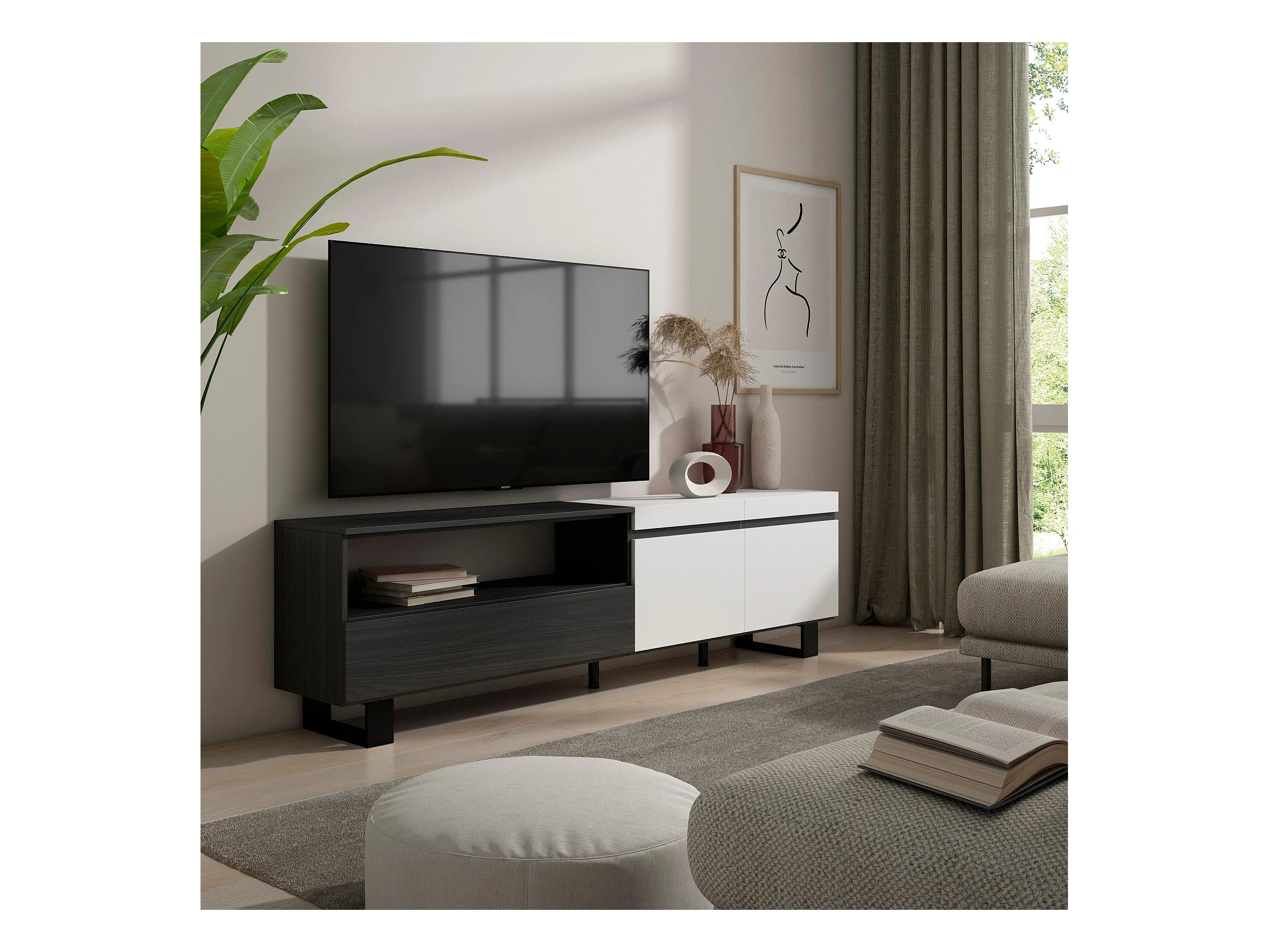 TV-Schrank, Lowboard, 200x35x57cm, Für TV-Geräte bis zu 80", Industriedesign, Weiß und Schwarz