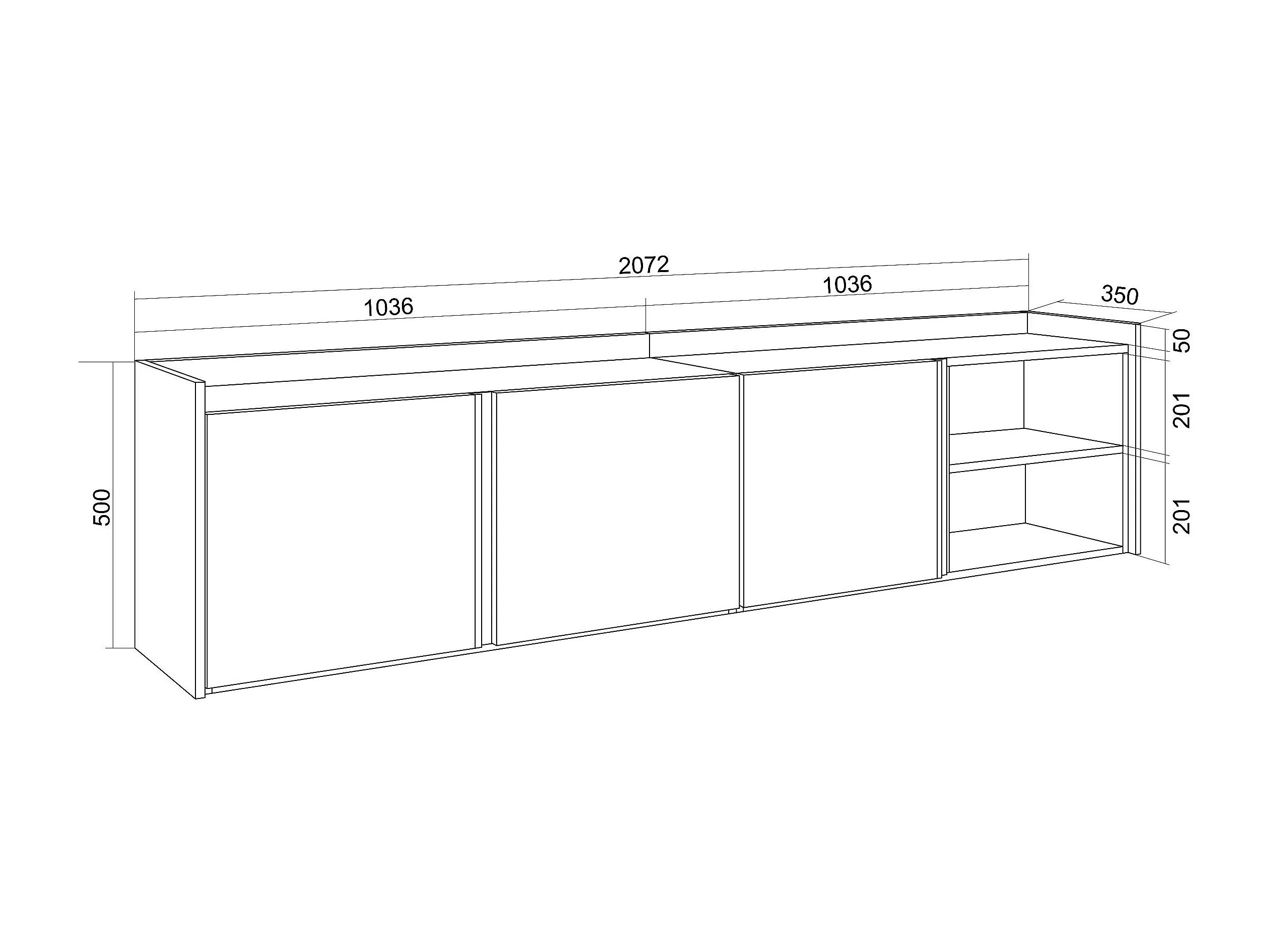 TV-Schrank, Lowboard, 207x50x35 cm, Für TV-Geräte bis zu 80", Hängend, LED, Eiche Schwarz