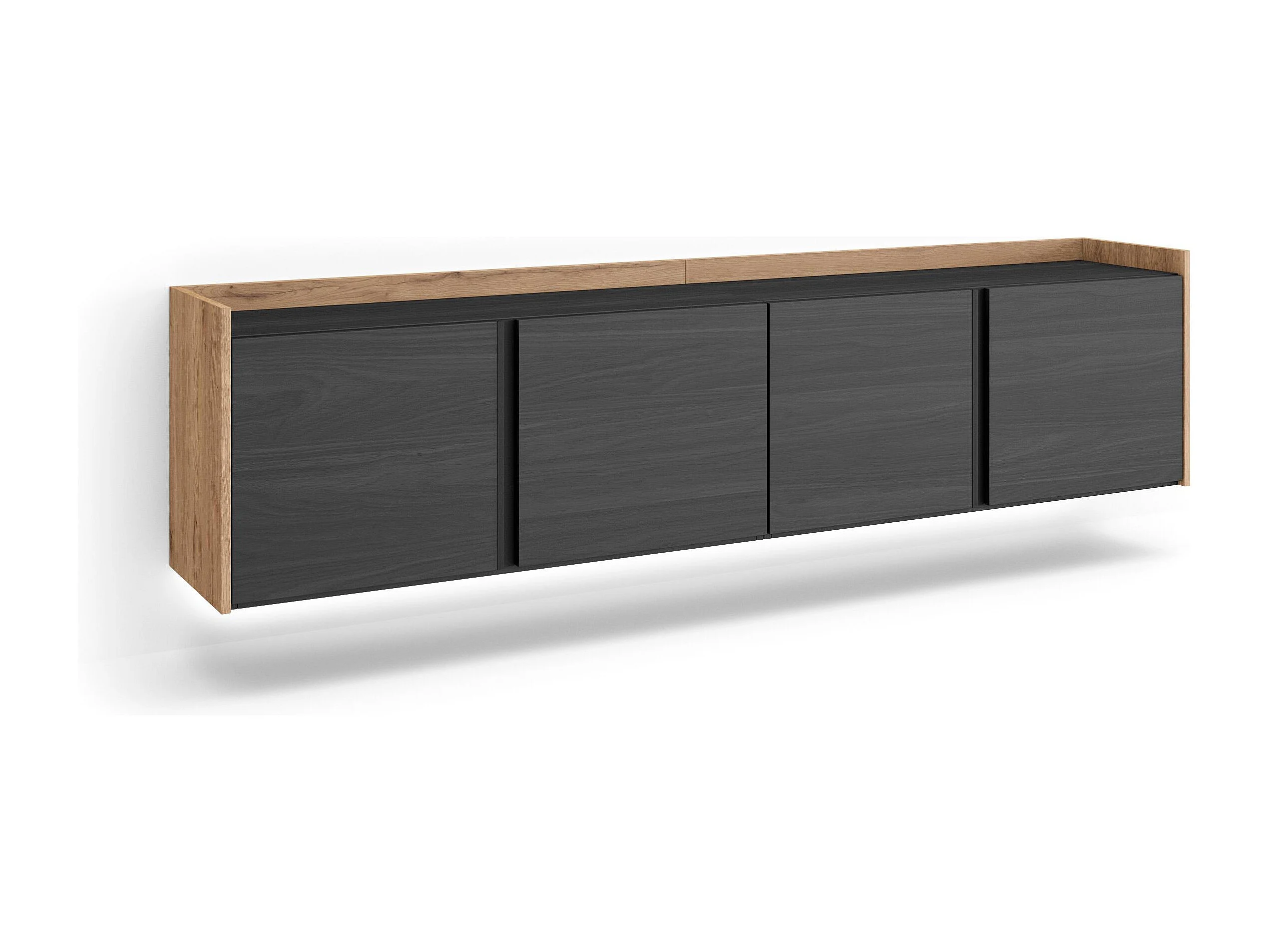 TV-Schrank, Lowboard, 207x50x35 cm, Für TV-Geräte bis zu 80", Hängend, LED, Schwarz Eiche