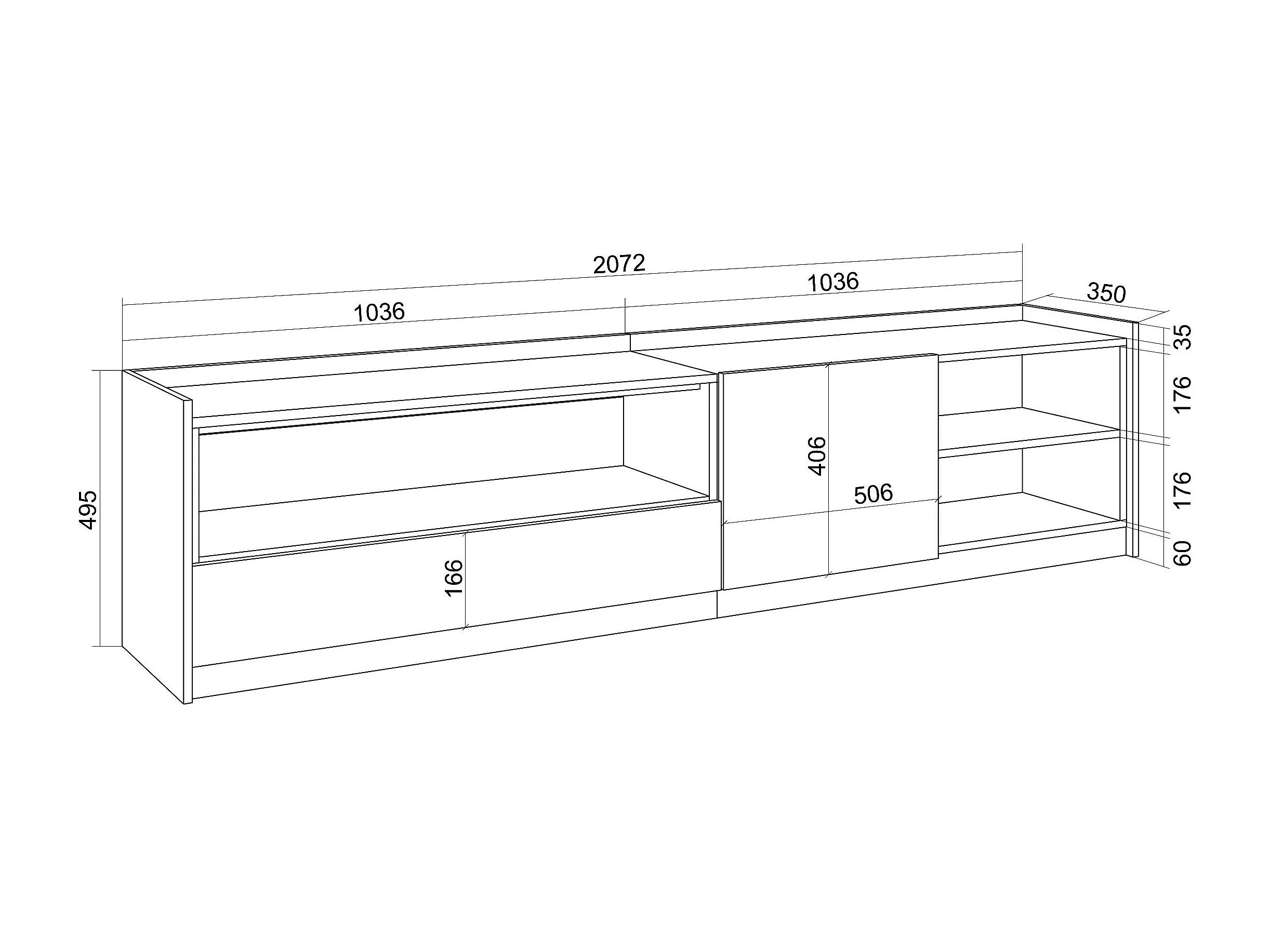 TV-Schrank, Lowboard, 207x50x37 cm, Für TV-Geräte bis zu 80", Fernsehtisch, Schwarz Eiche