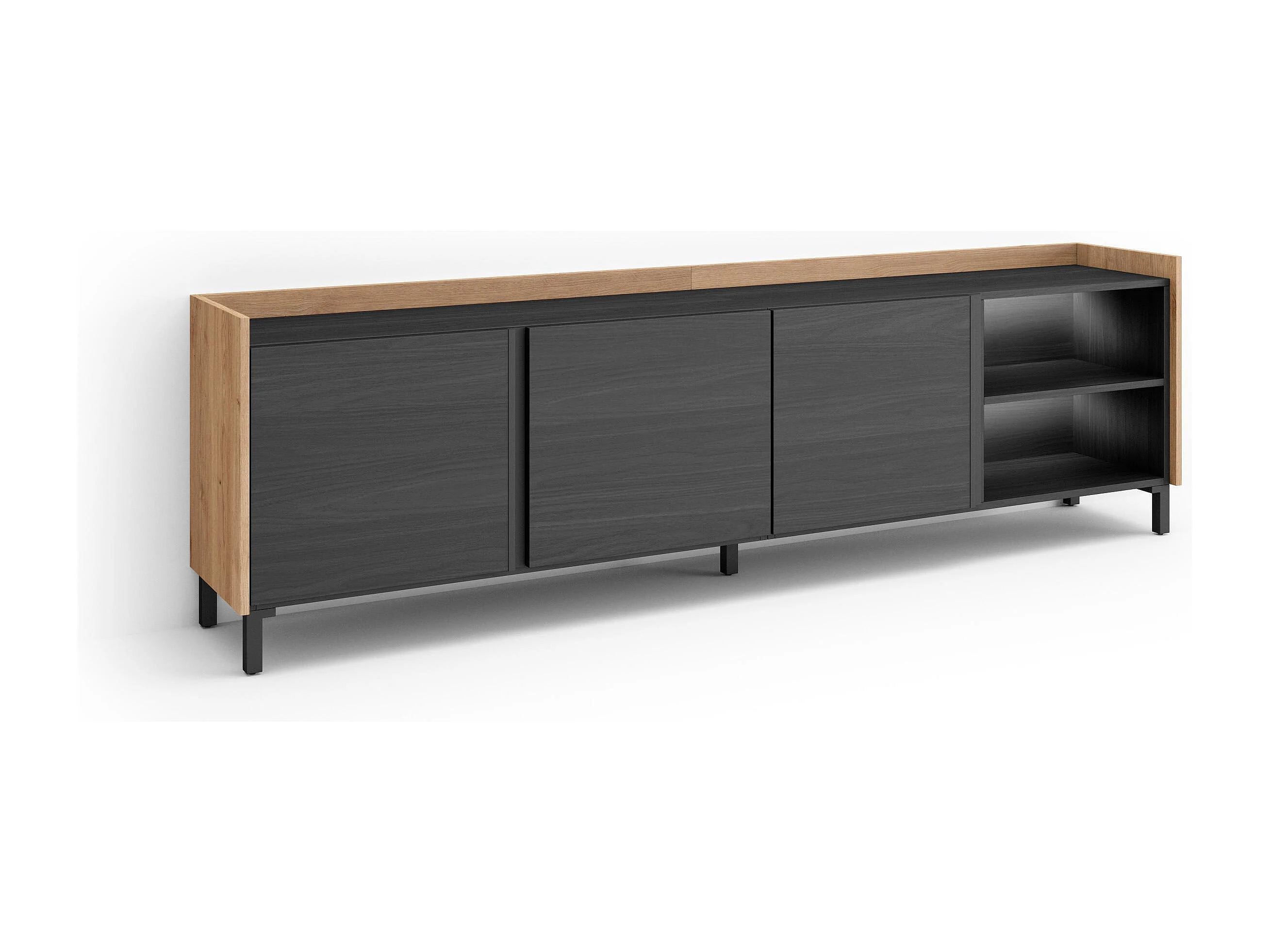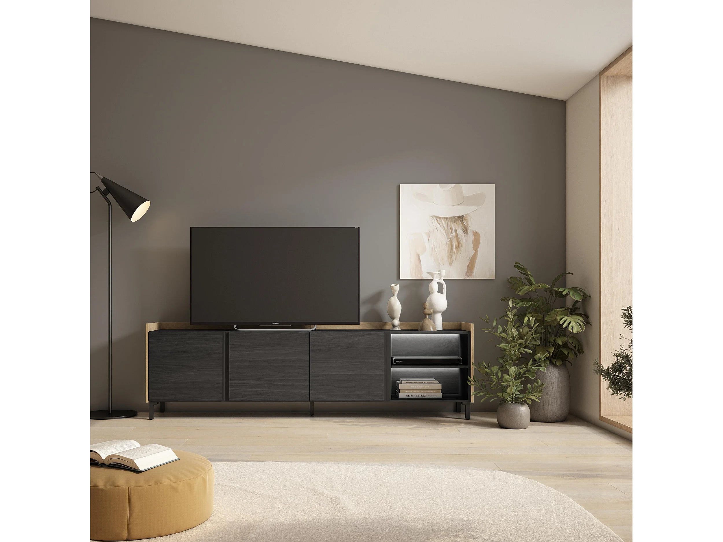 TV-Schrank, Lowboard, 207x61x35 cm, Für TV-Geräte bis zu 80", Industriedesign, LED, Schwarz Eiche