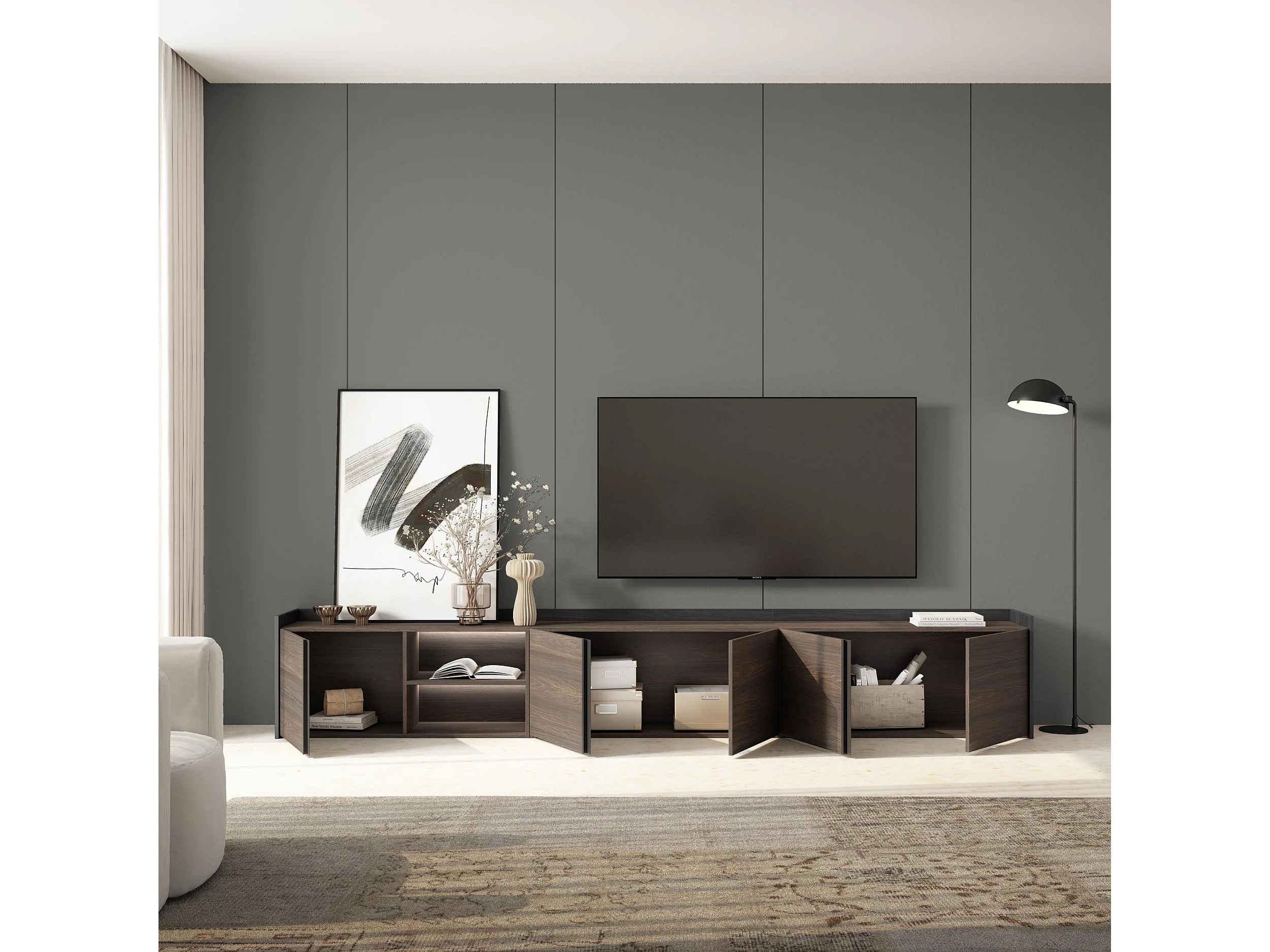 TV-Schrank, Lowboard, 309x50x35 cm, Für TV-Geräte bis zu 80", LED, Dunkler Eiche und Schwarz