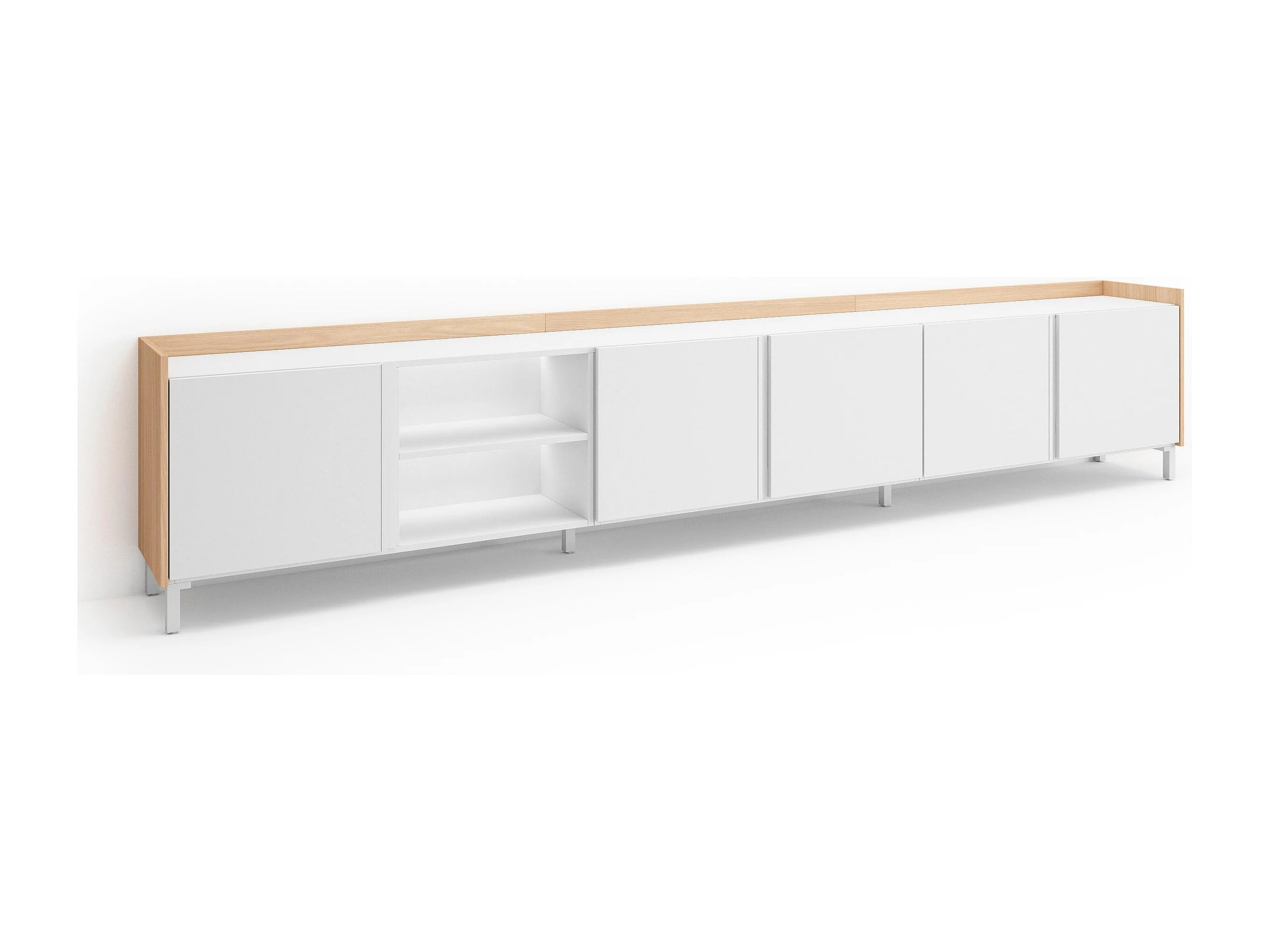 TV-Schrank, Lowboard, 309x61x35 cm, Für TV-Geräte bis zu 80", Industriedesign, LED, Weiß und Eiche Soft