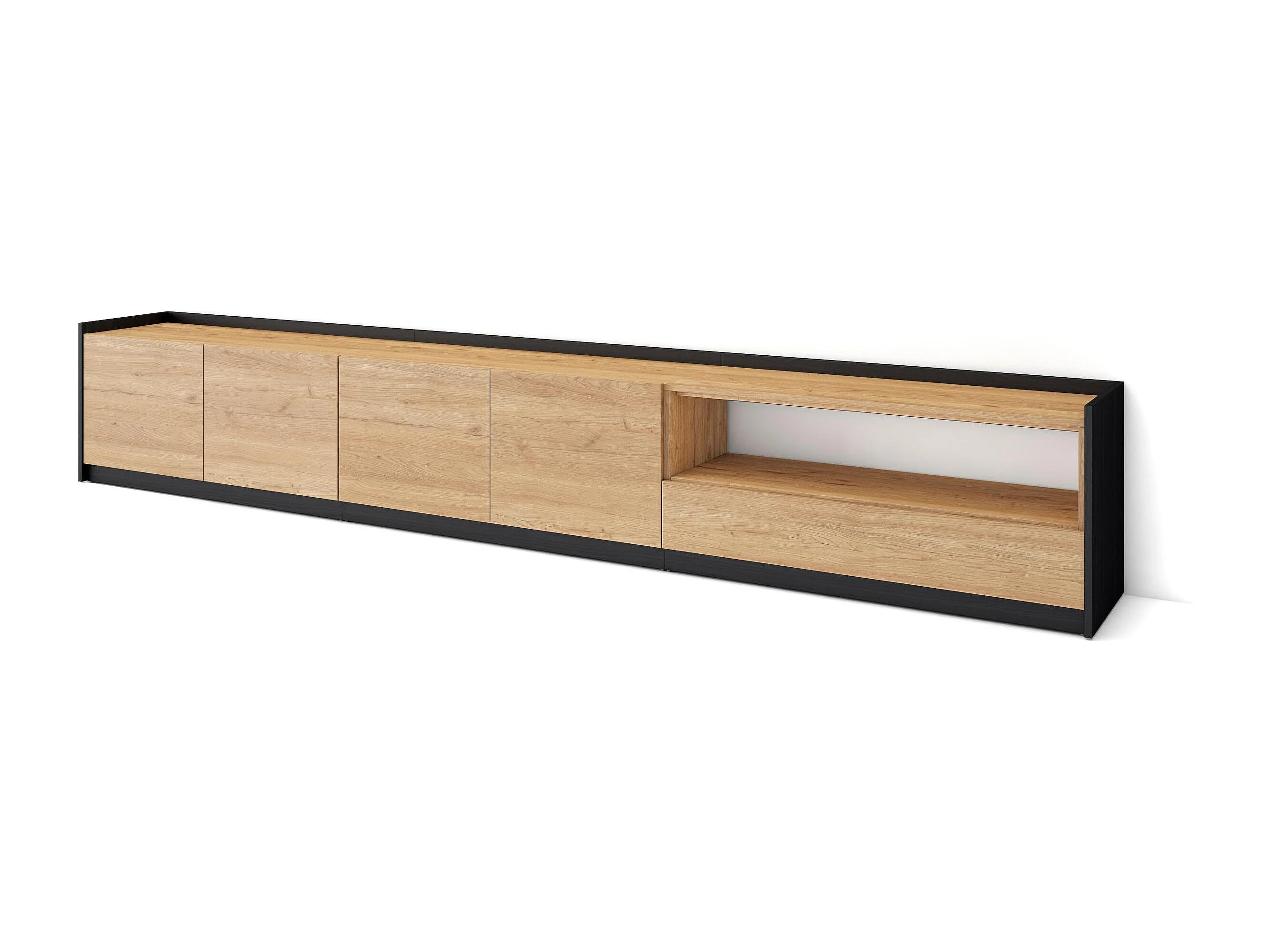 TV-Schrank, Lowboard, 310x50x37 cm, Für TV-Geräte bis zu 80", Fernsehtisch, Eiche Schwarz