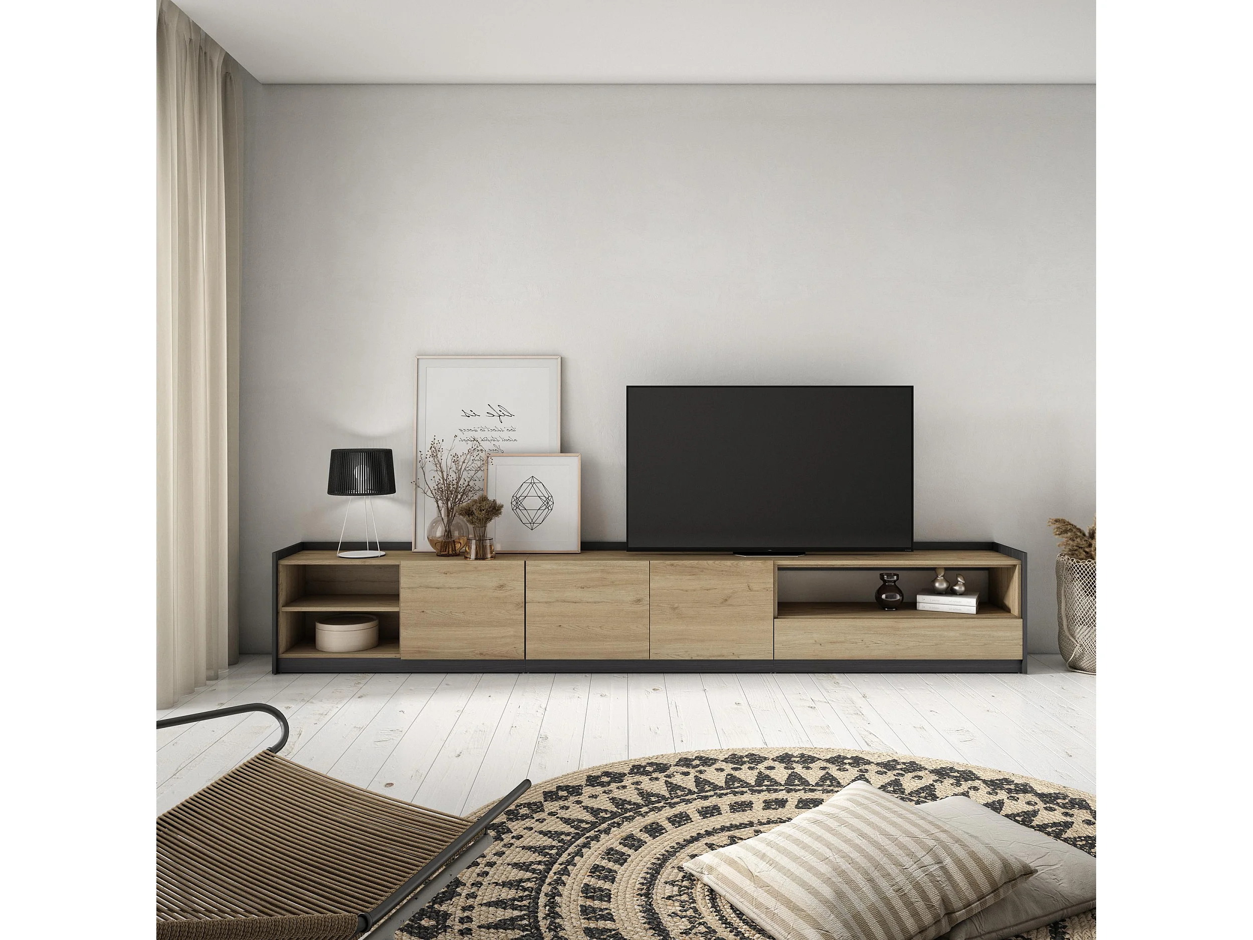 TV-Schrank, Lowboard, 310x50x37 cm, Für TV-Geräte bis zu 80", Fernsehtisch, Eiche Schwarz