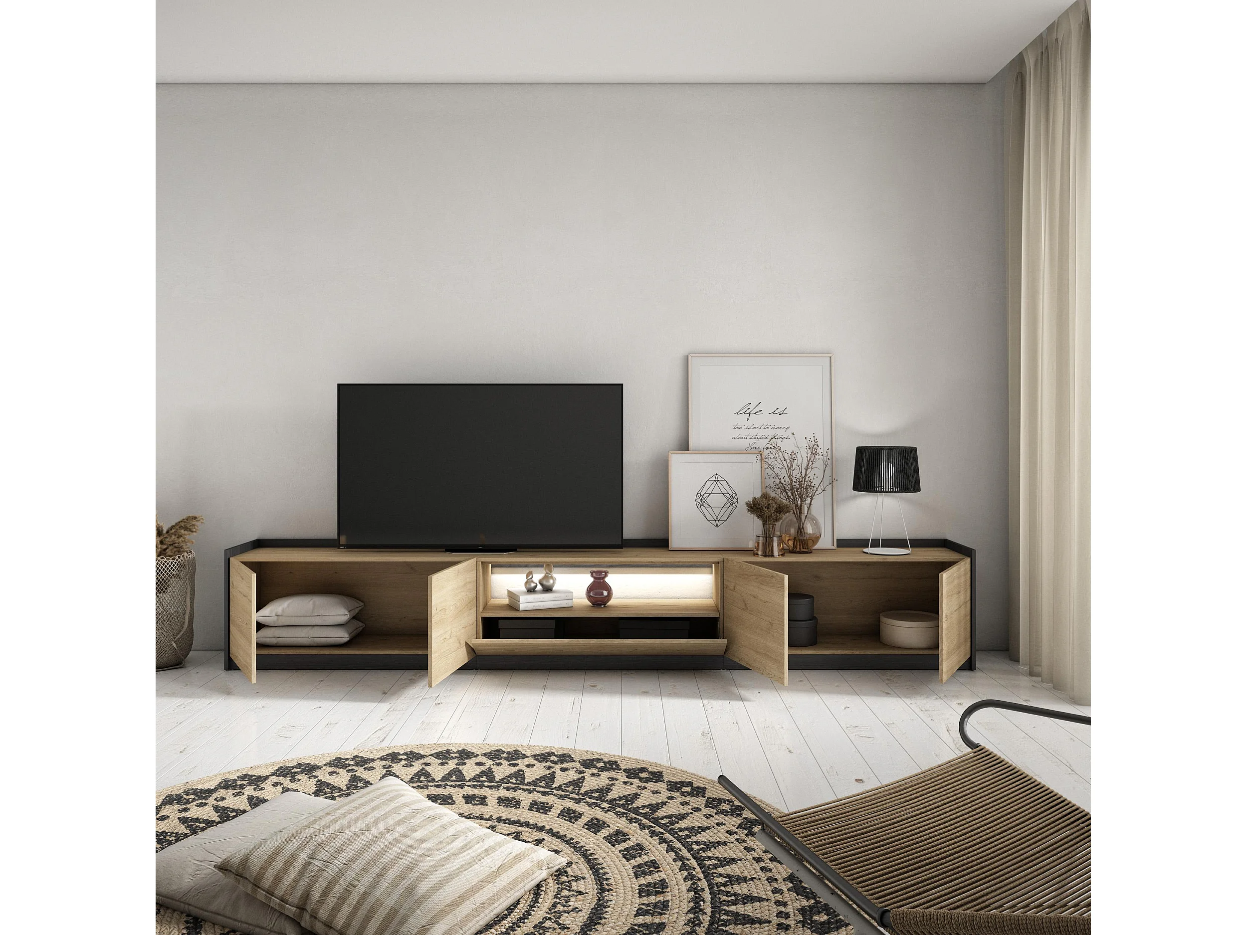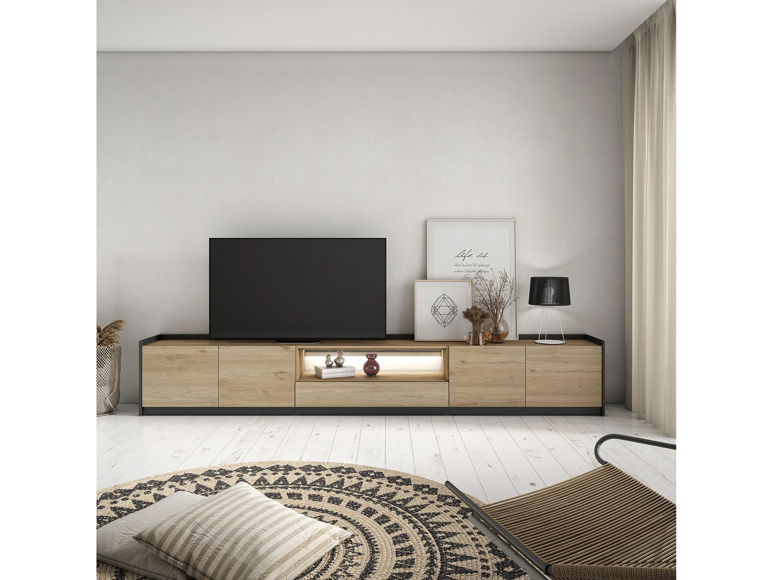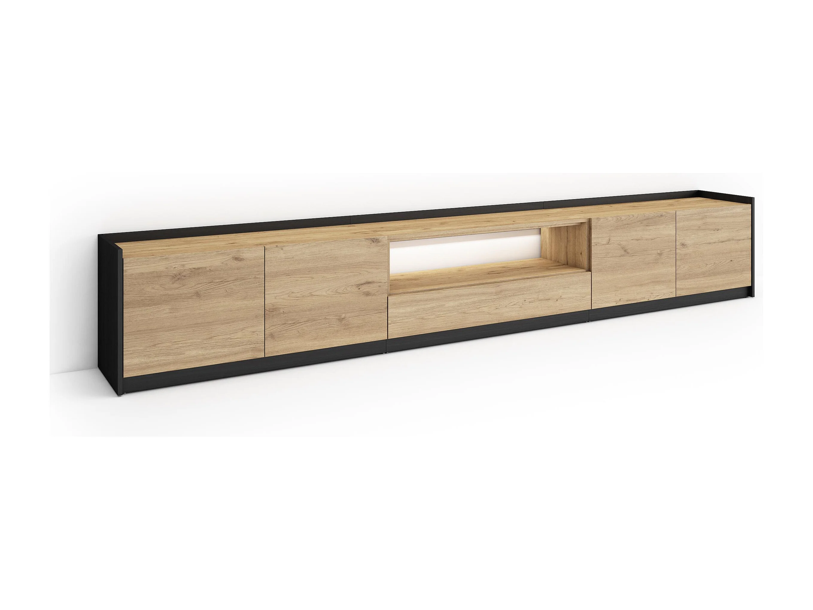 TV-Schrank, Lowboard, 310x50x37 cm, Für TV-Geräte bis zu 80", LED, Eiche Schwarz