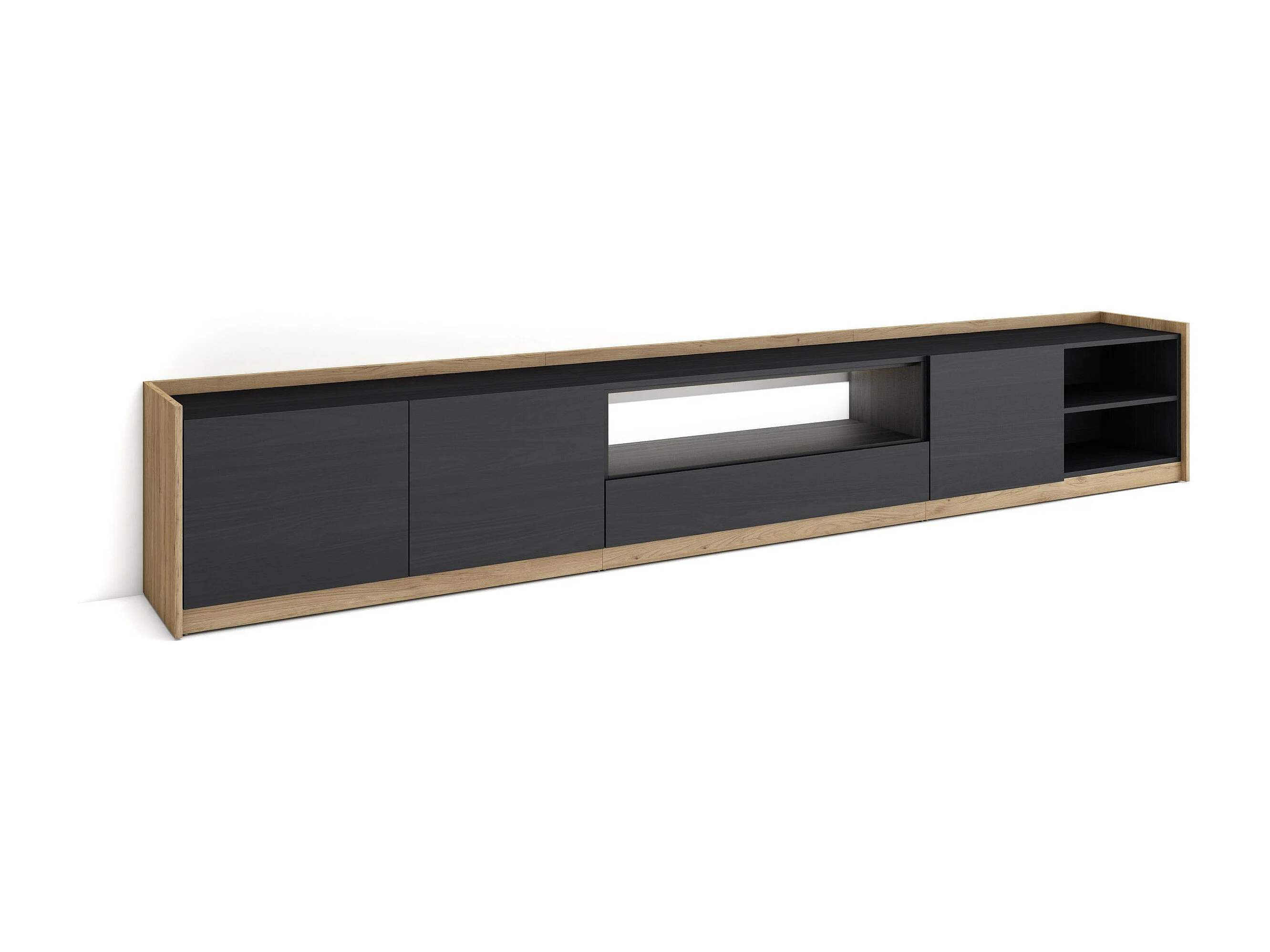 TV-Schrank, Lowboard, 310x50x37 cm, Für TV-Geräte bis zu 80", LED, Schwarz Eiche