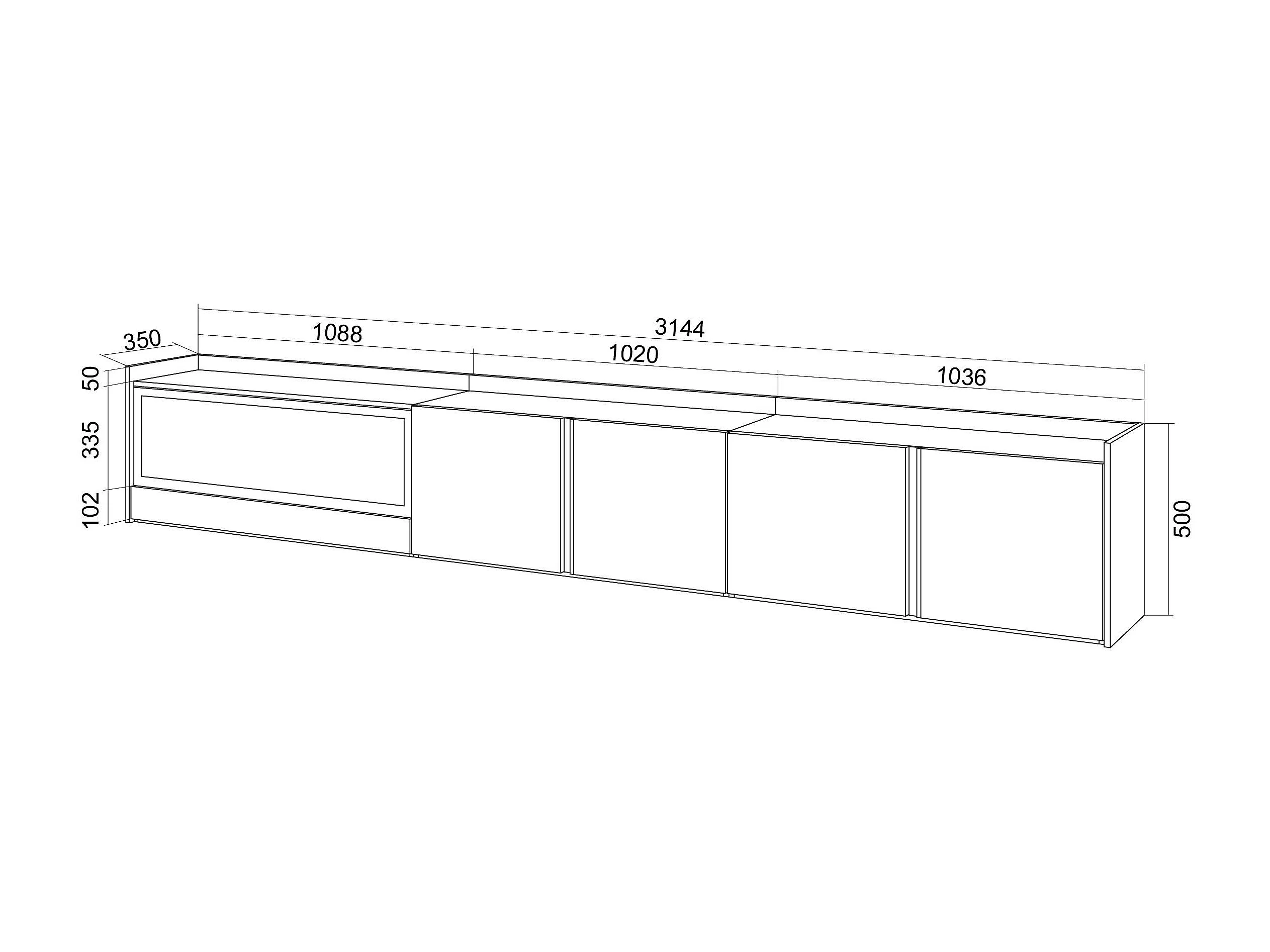 TV-Schrank, Lowboard, 315x50x35 cm, Für TV-Geräte bis zu 80", Elektrokamin XXL, LED, Weiß und Eiche Soft