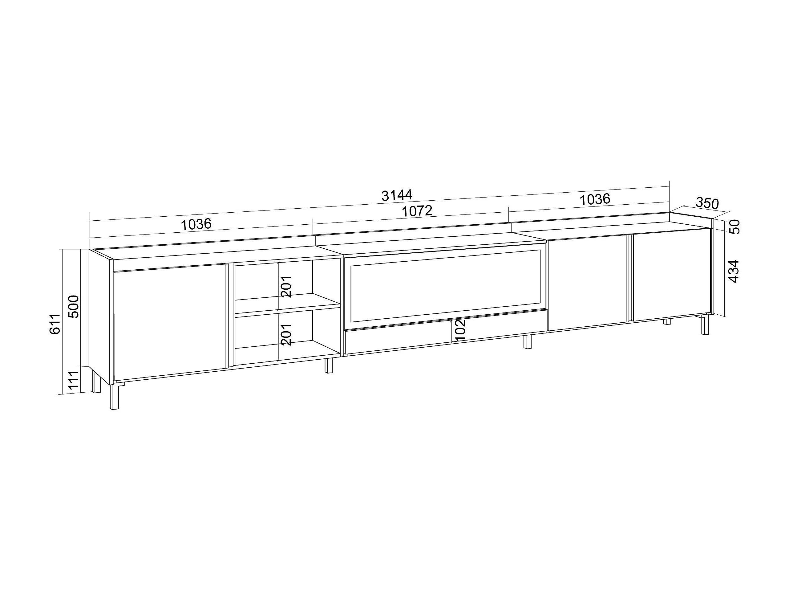TV-Schrank, Lowboard, 315x61x35 cm, Für TV-Geräte bis zu 80", Elektrokamin XXL, Industriedesign, LED, Dunkler Eiche und Schwarz