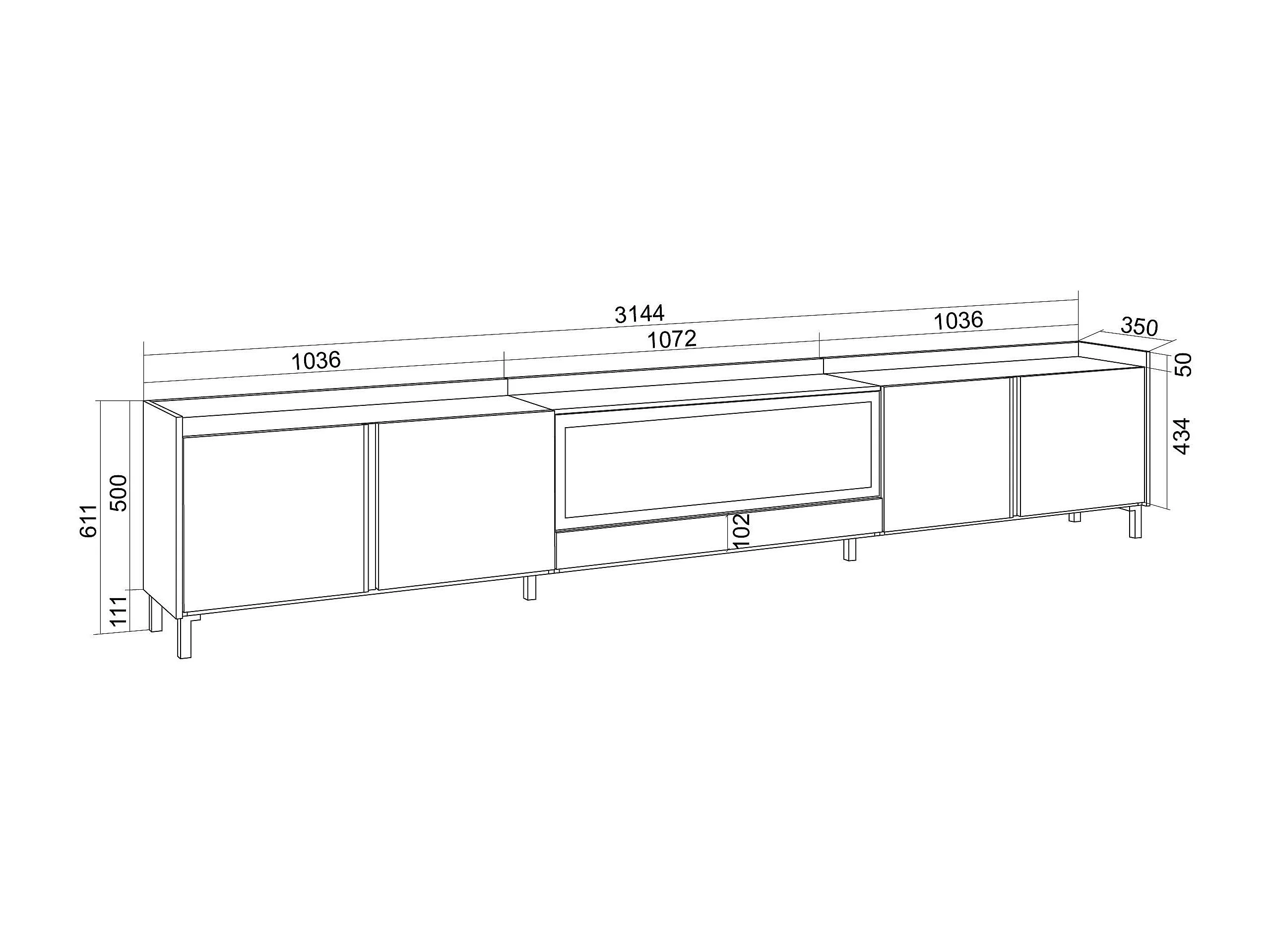 TV-Schrank, Lowboard, 315x61x35 cm, Für TV-Geräte bis zu 80", Elektrokamin XXL, Industriedesign, Schwarz Eiche