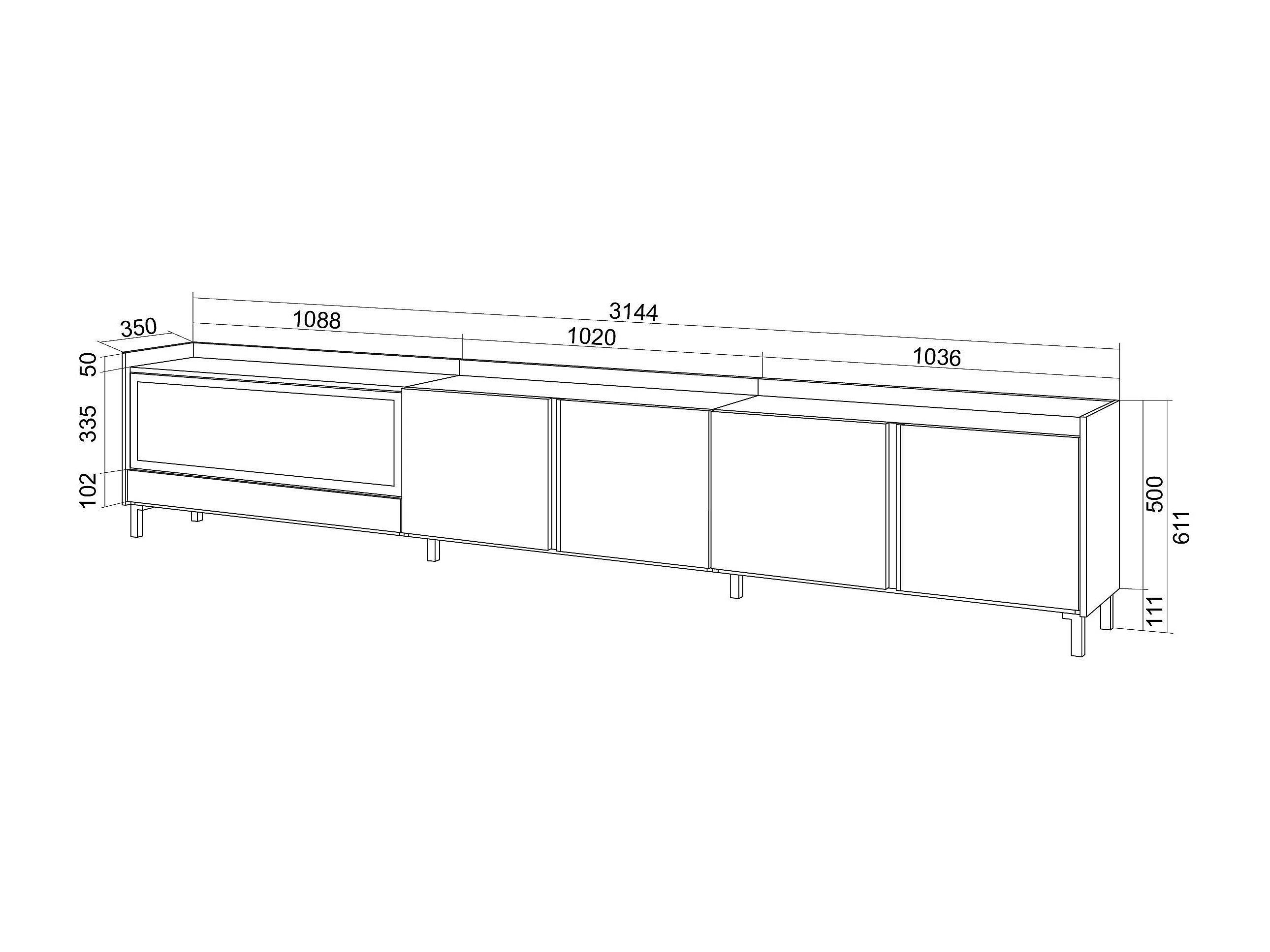 TV-Schrank, Lowboard, 315x61x35 cm, Für TV-Geräte bis zu 80", Elektrokamin XXL, Industriedesign, Weiß und Eiche Soft