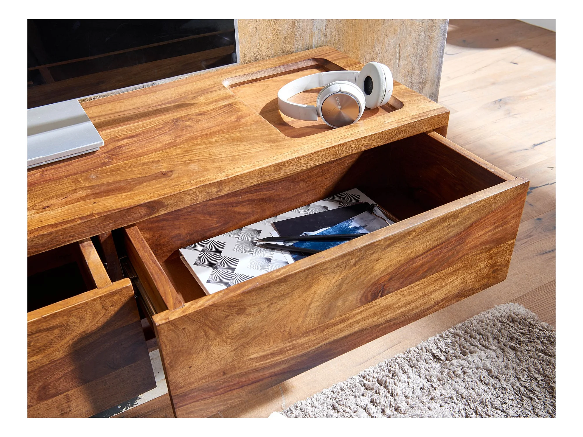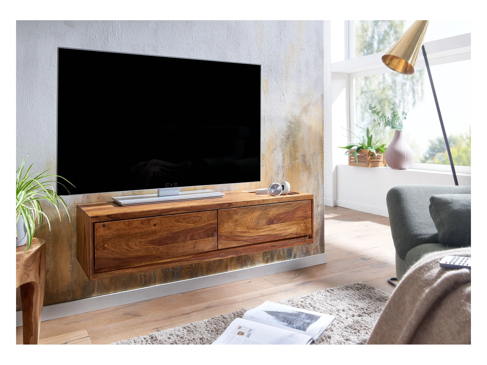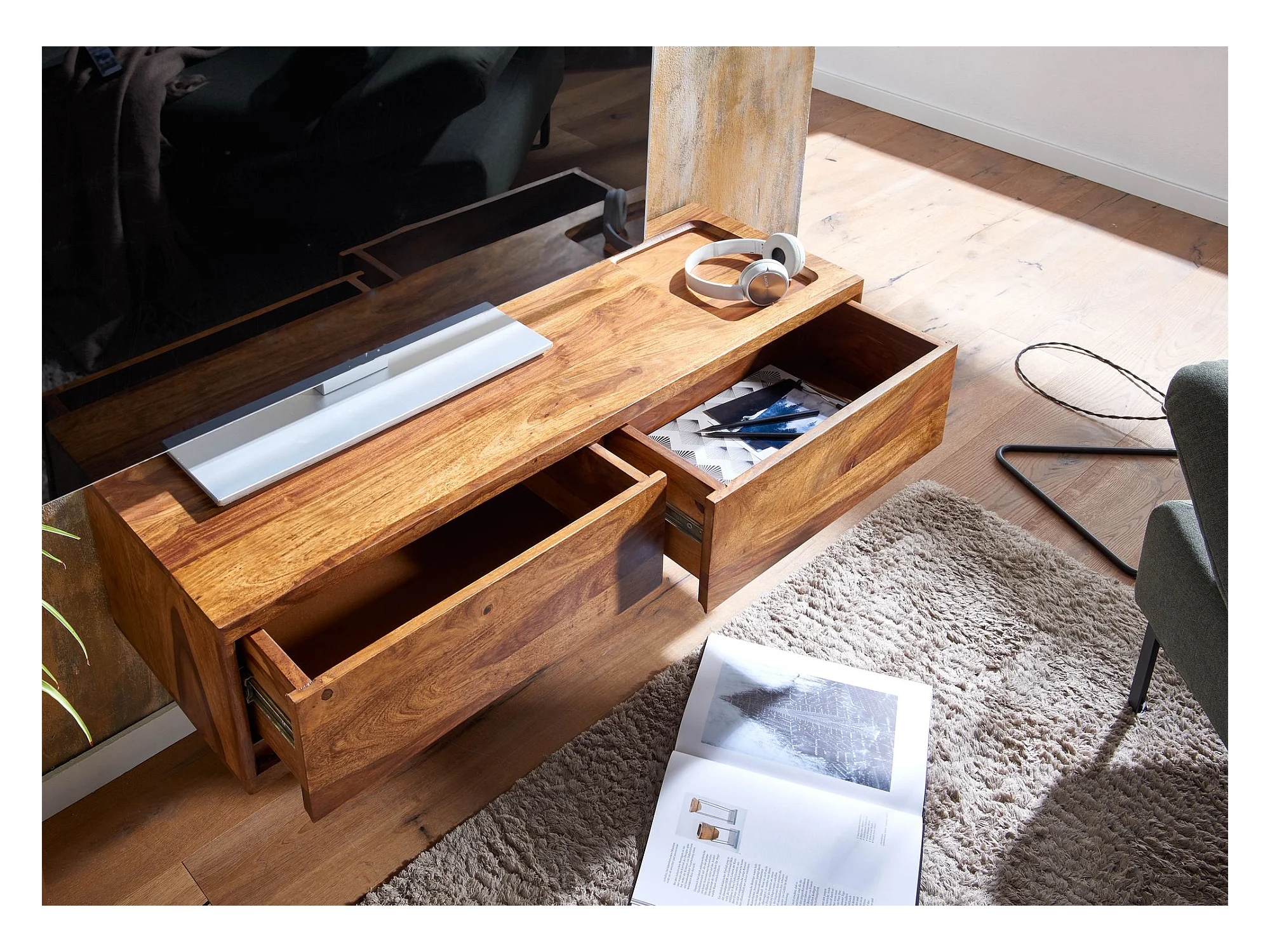 TV Schrank Lowboard Hängend 108x25x34 cm Holz Massiv Fernsehkommode