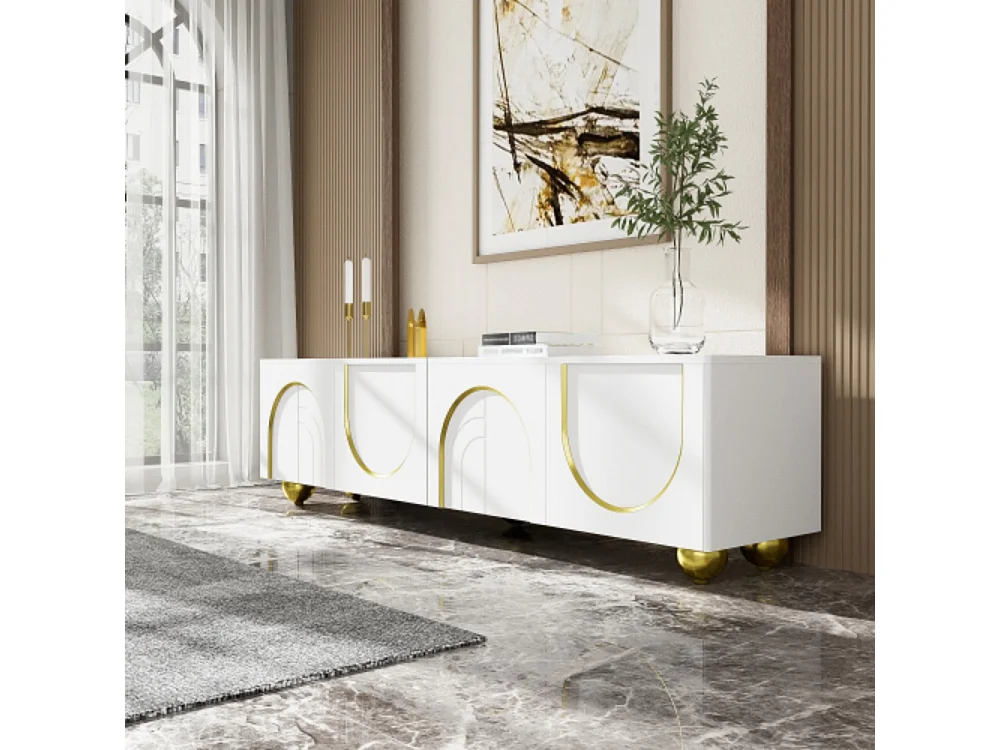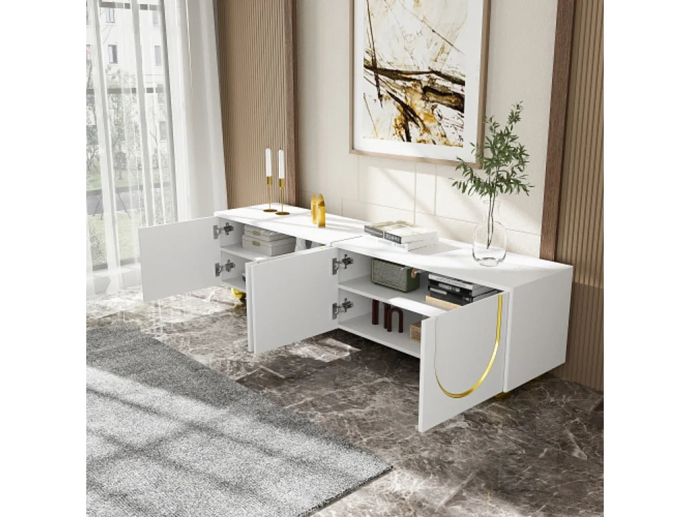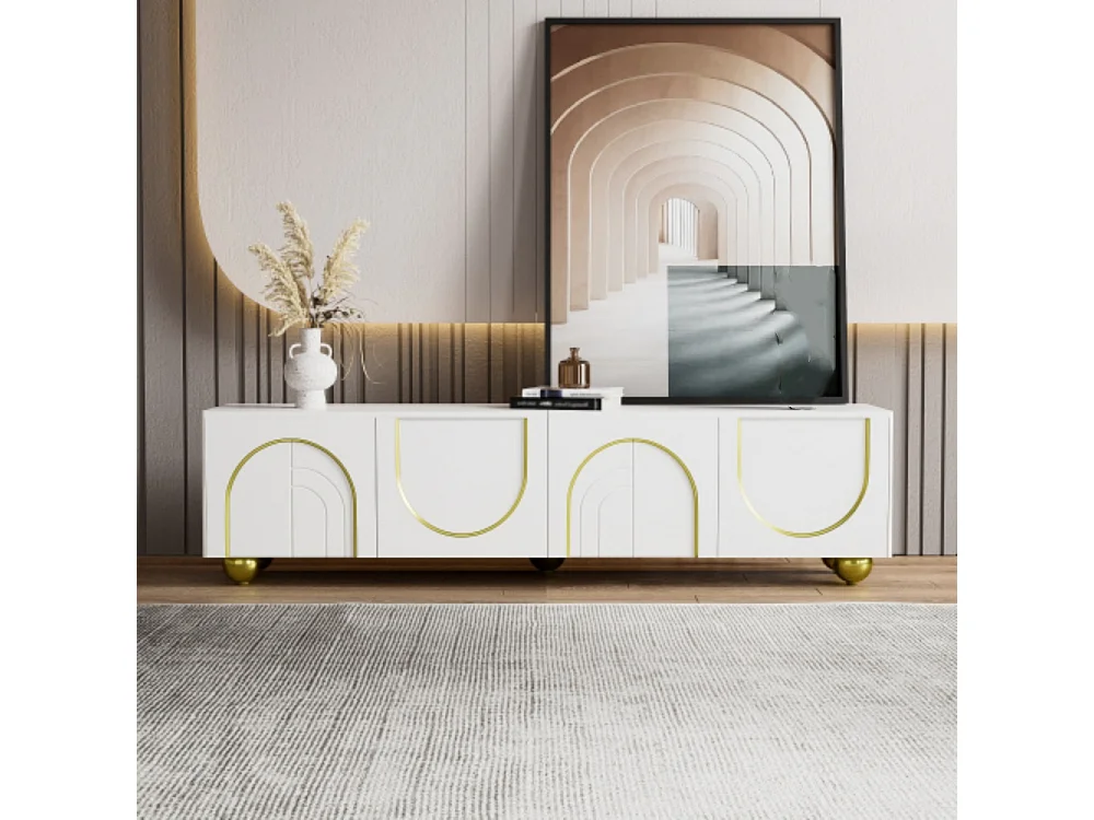 TV-Schrank, lowboard mit strukturierten Türen, TV-Möbel mit Schubladen, TV-Konsolentisch offenen Fächern