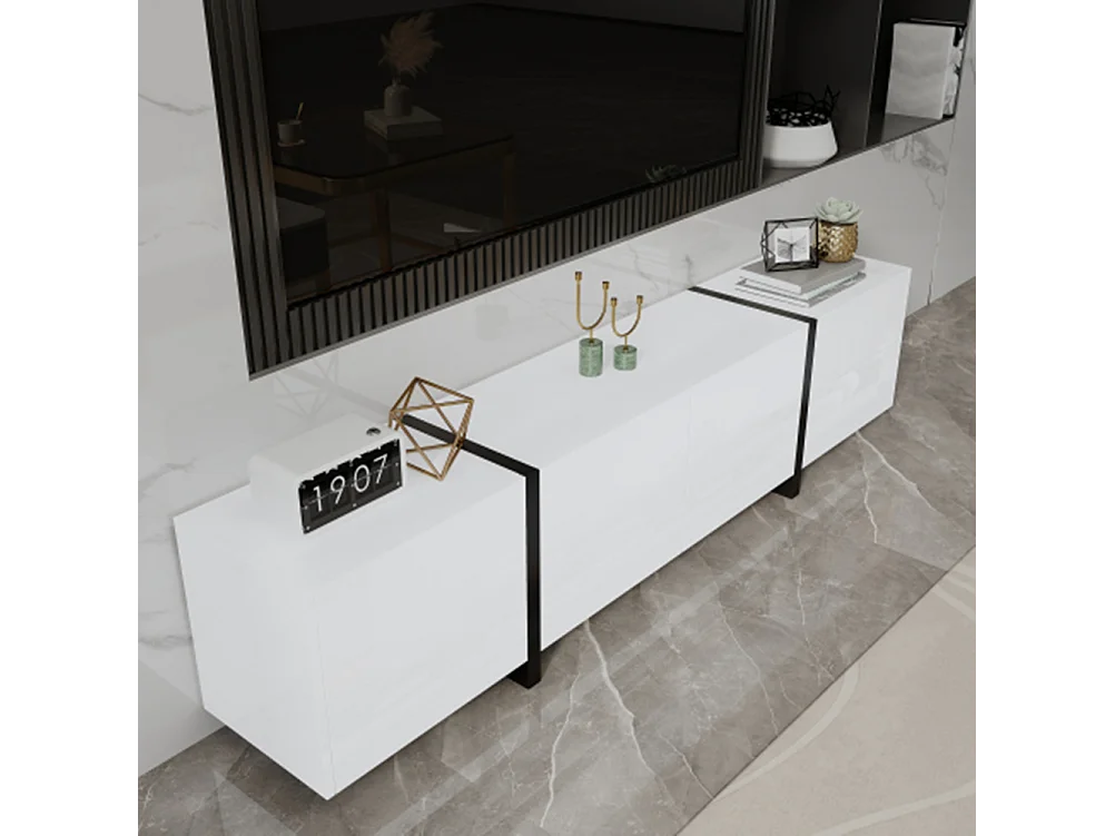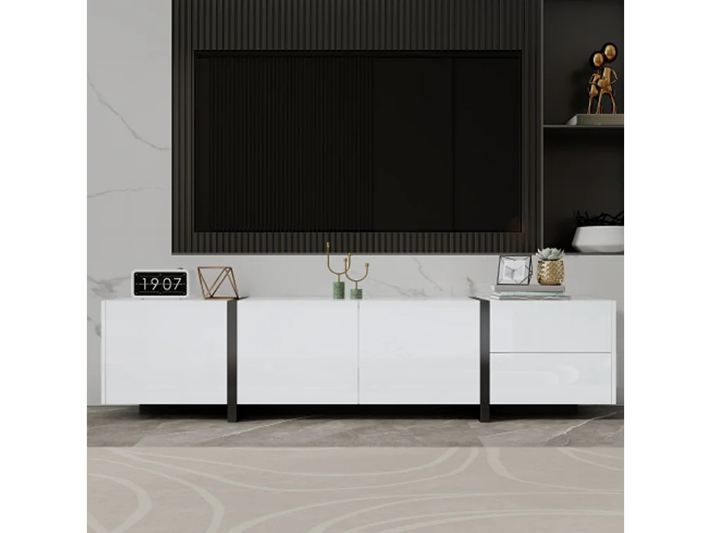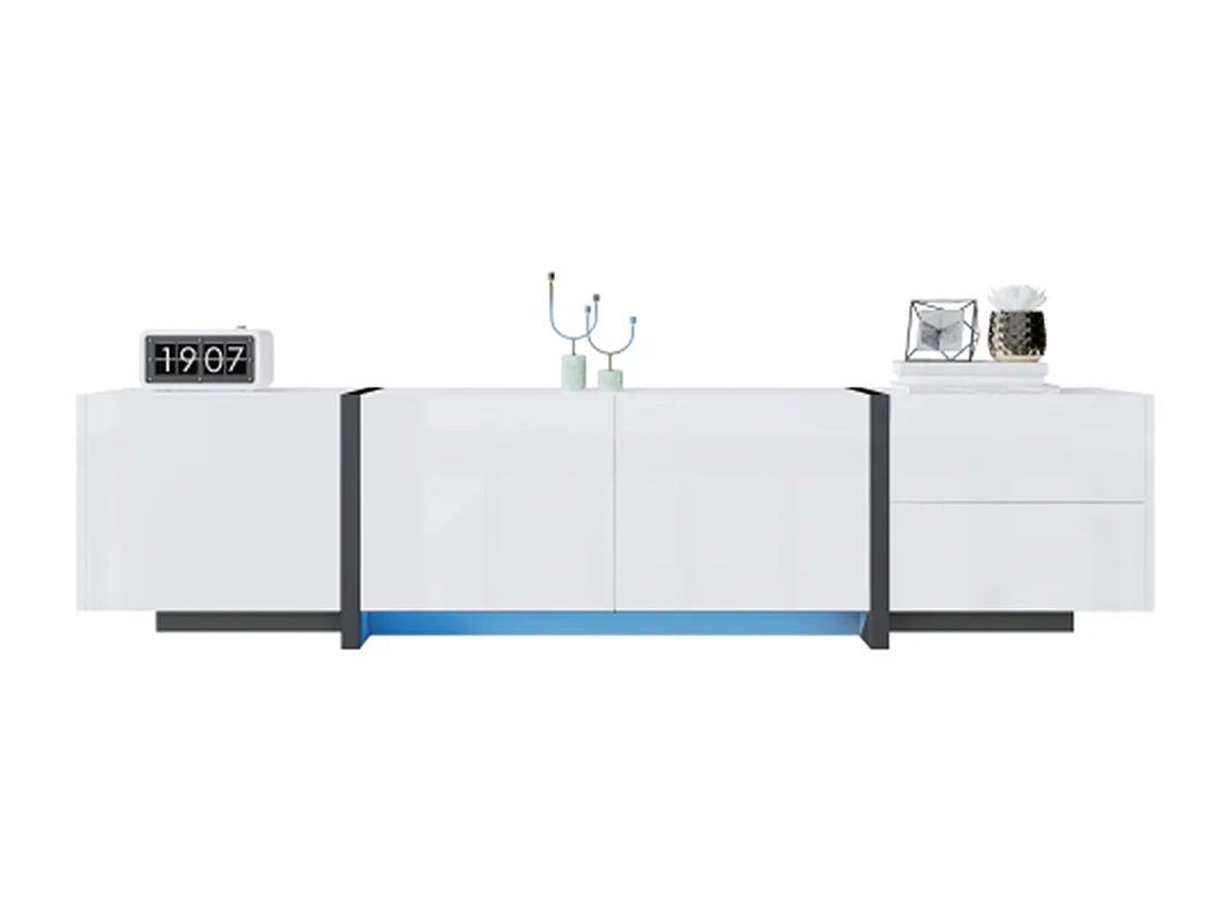 TV-Schrank, Lowboard,TV-Ständer Hochglanzschrank abgesetzte Tischbeine, mit schlichten Schranktüren und Schubladen