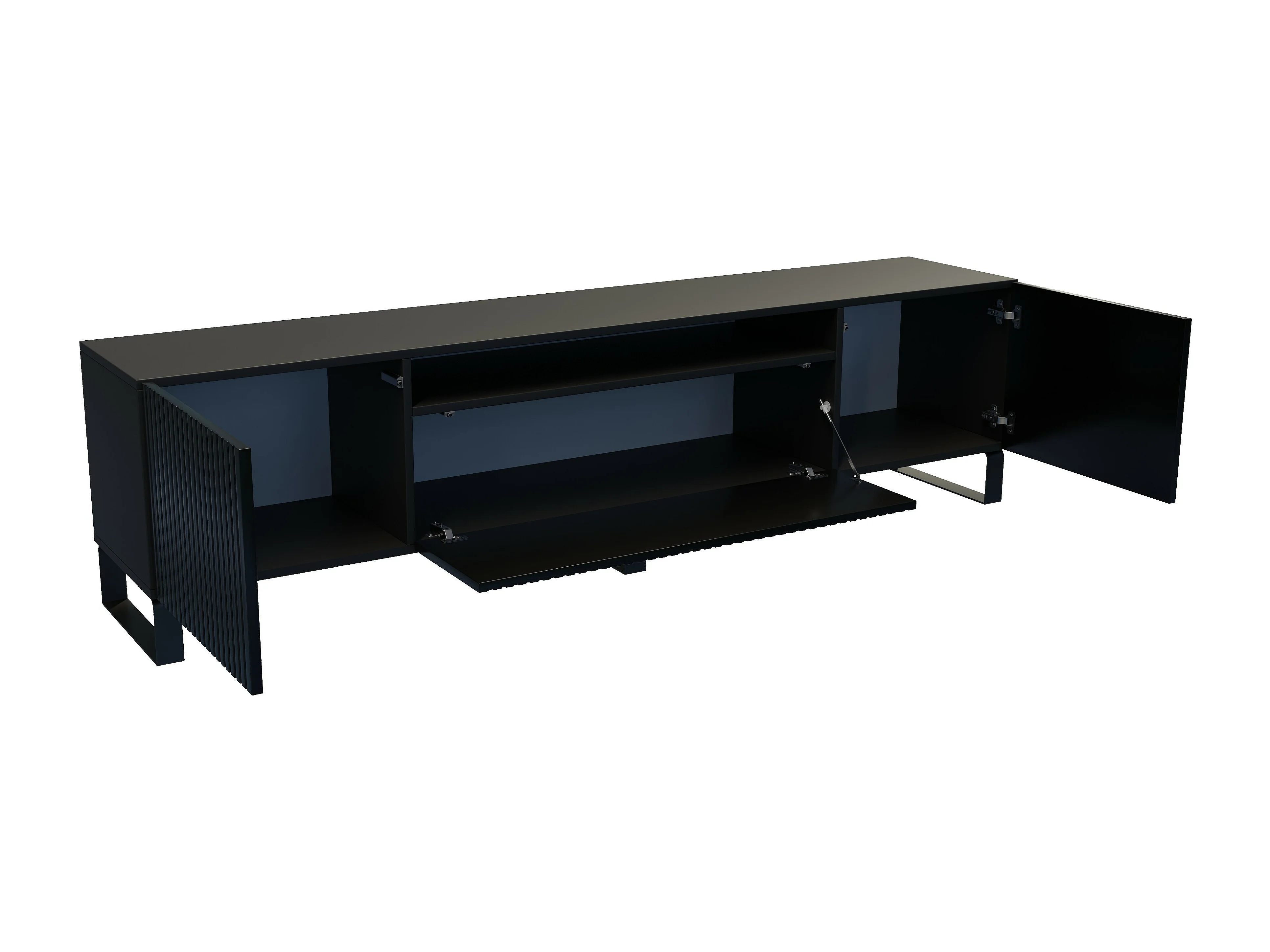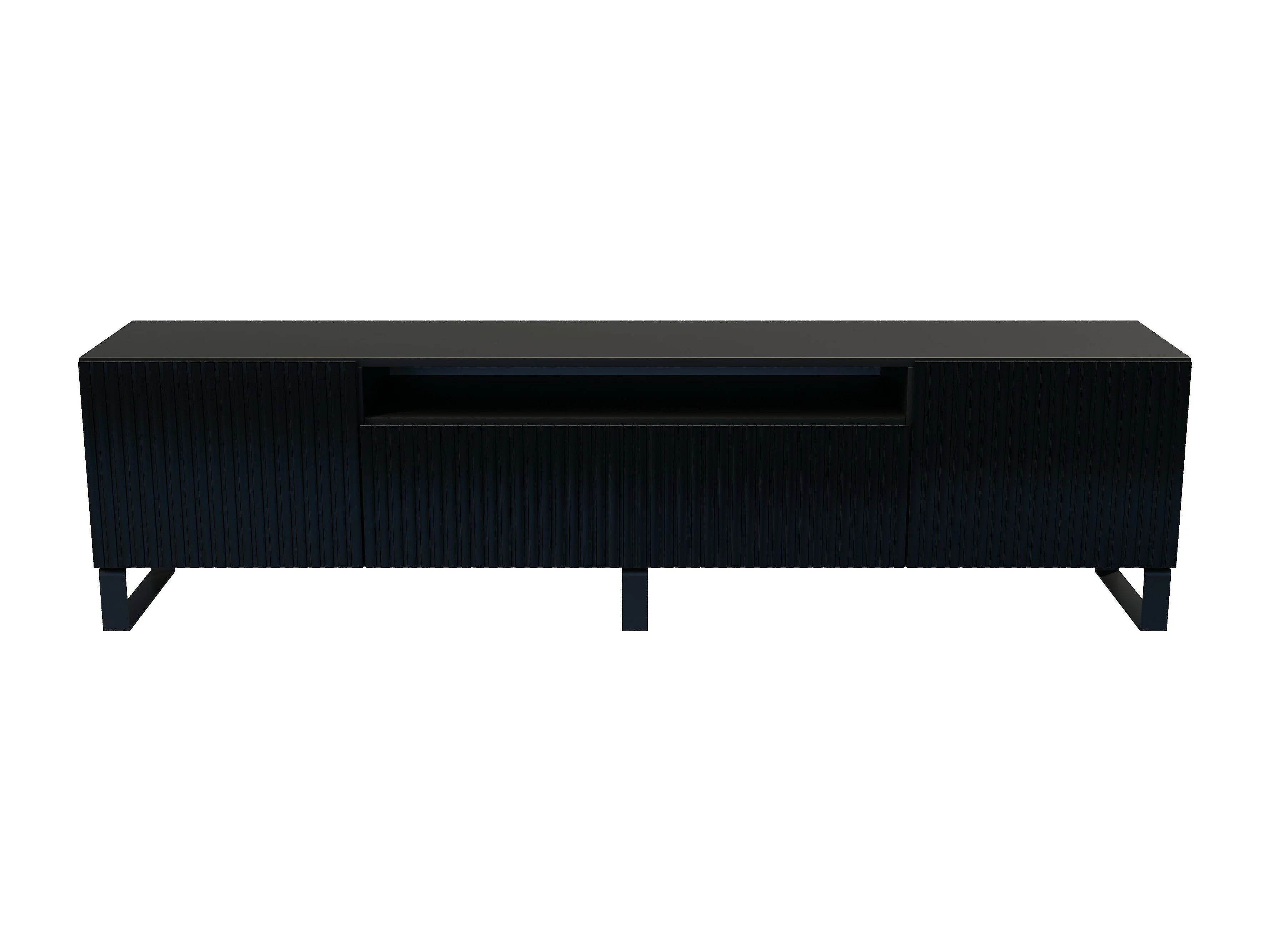TV-Schrank Marlo III Fernsehschrank TV-Lowboard 200 cm vertikal gefräste Fronten modernes Design dreitürig Wohnzimmer (Farbe: schwarz )