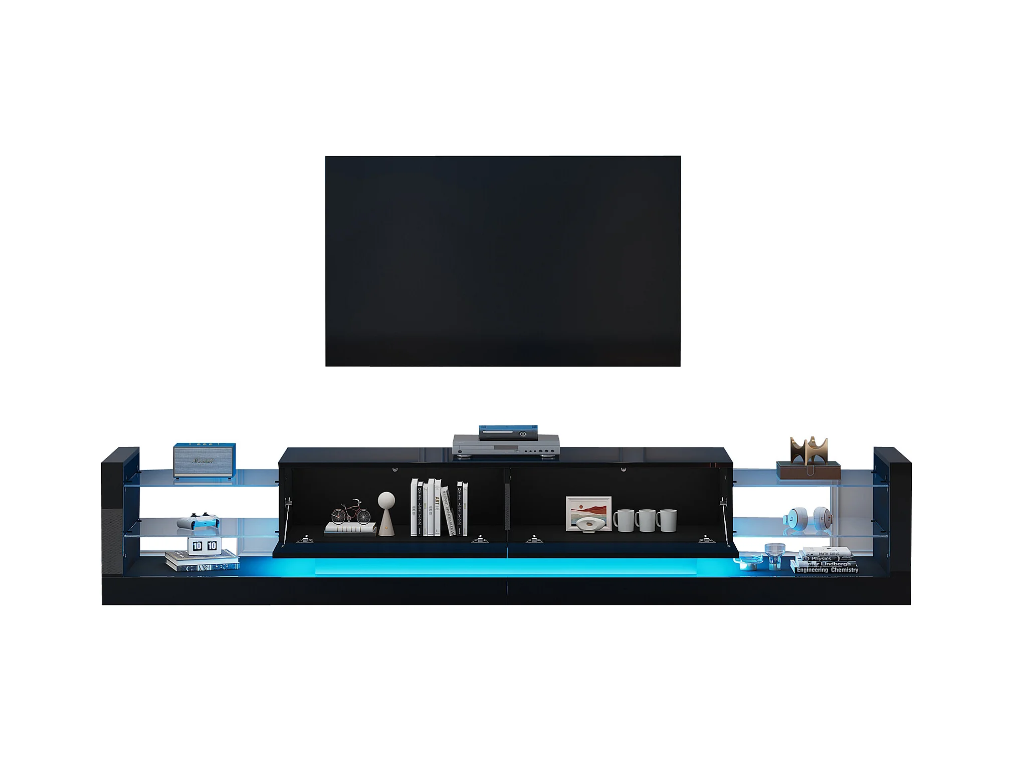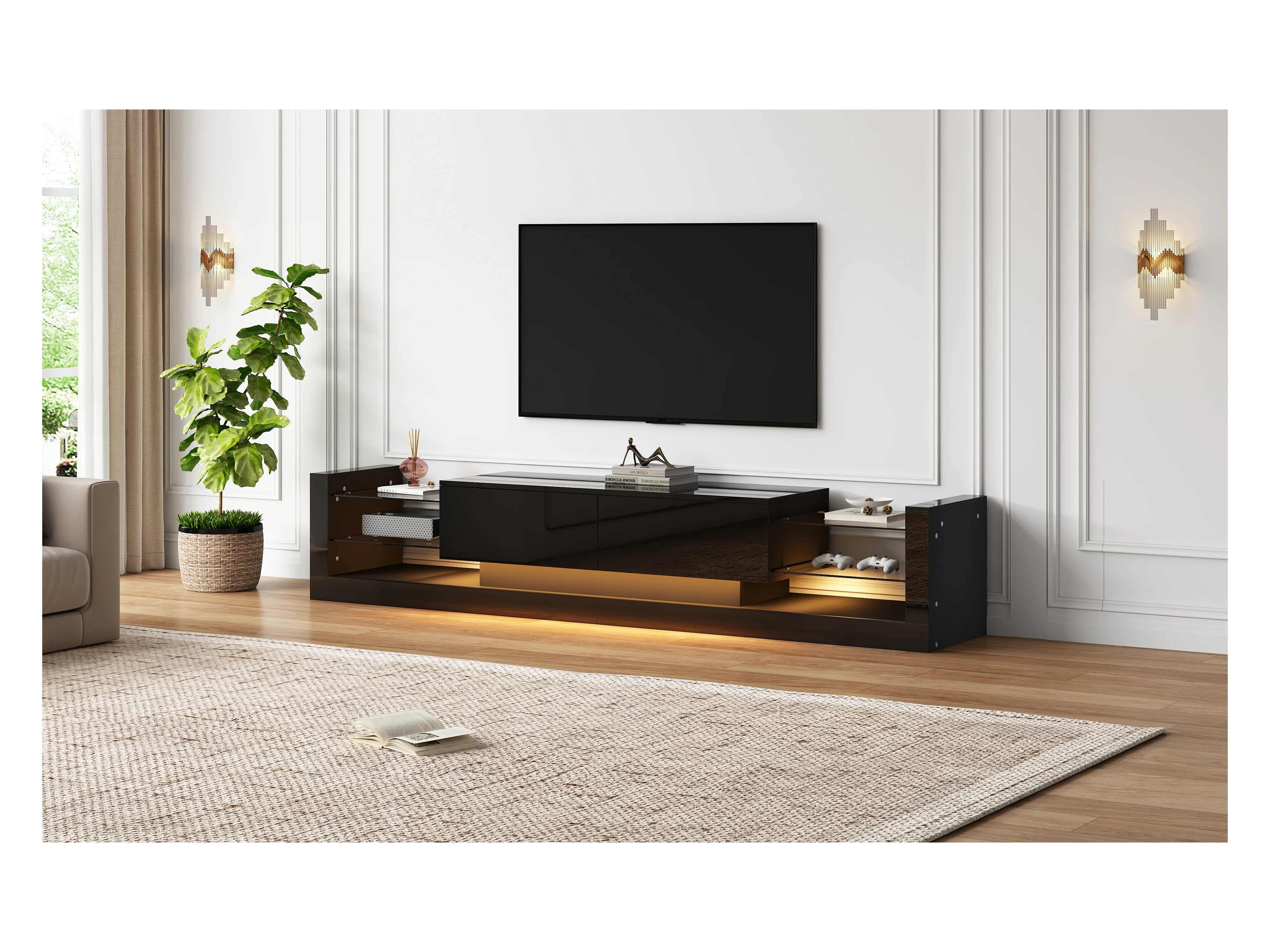 TV-Schrank mit 2 klappbaren Schubladen – 181 x 38 x 38 cm – LEDs – Spanplatte – glänzend schwarz