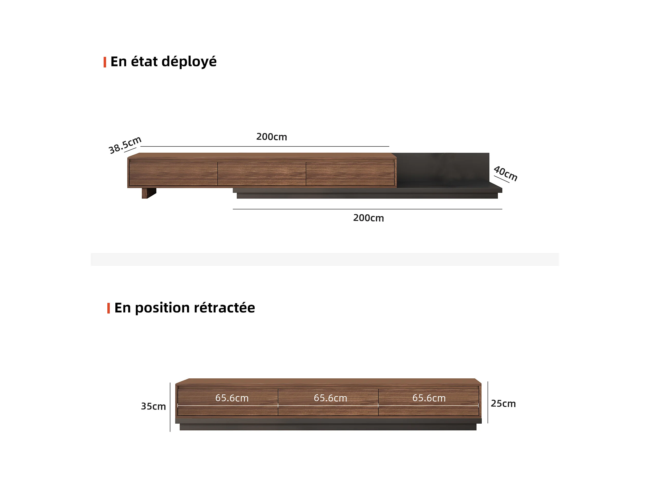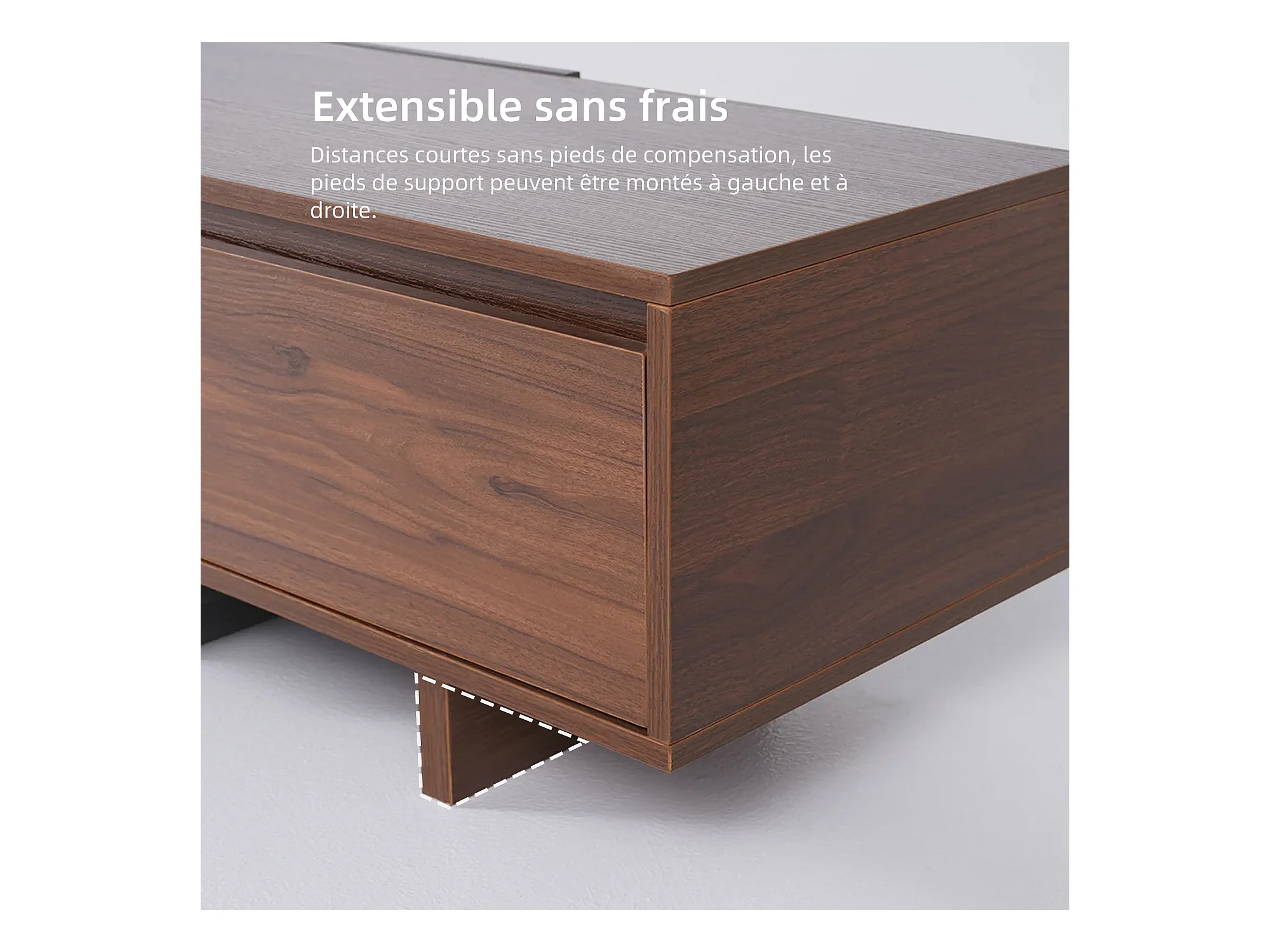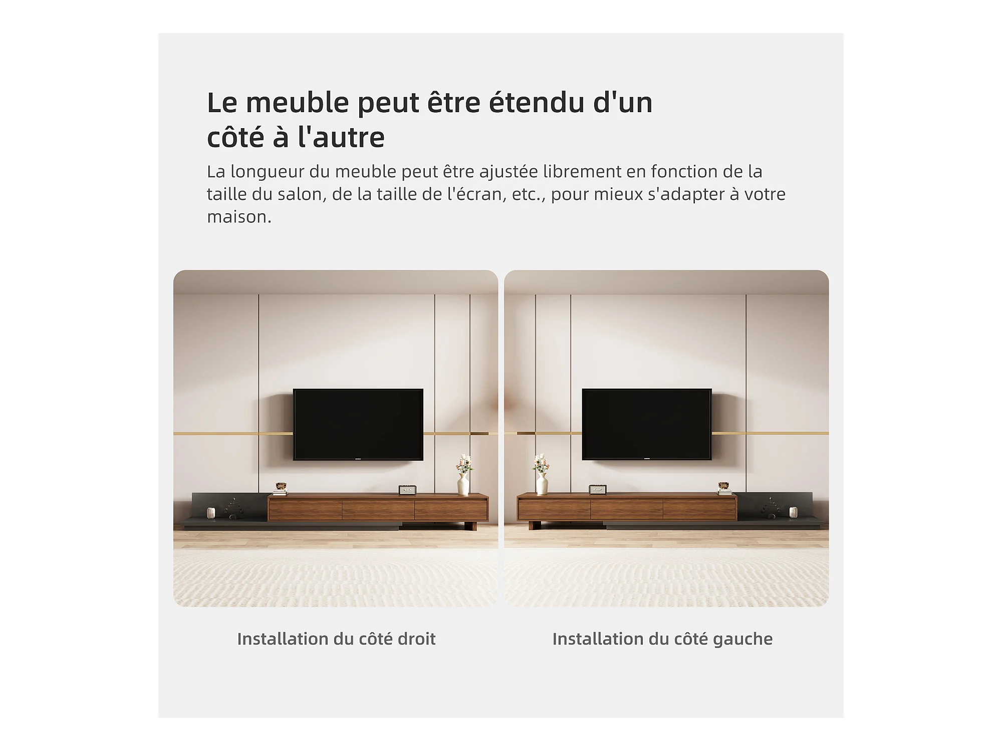 TV-Schrank mit 3 Schubladen, ausziehbarer und verstellbarer Fernsehtisch von 200 cm bis 330 cm, TV-Möbel für Wohnzimmer, Walnuss