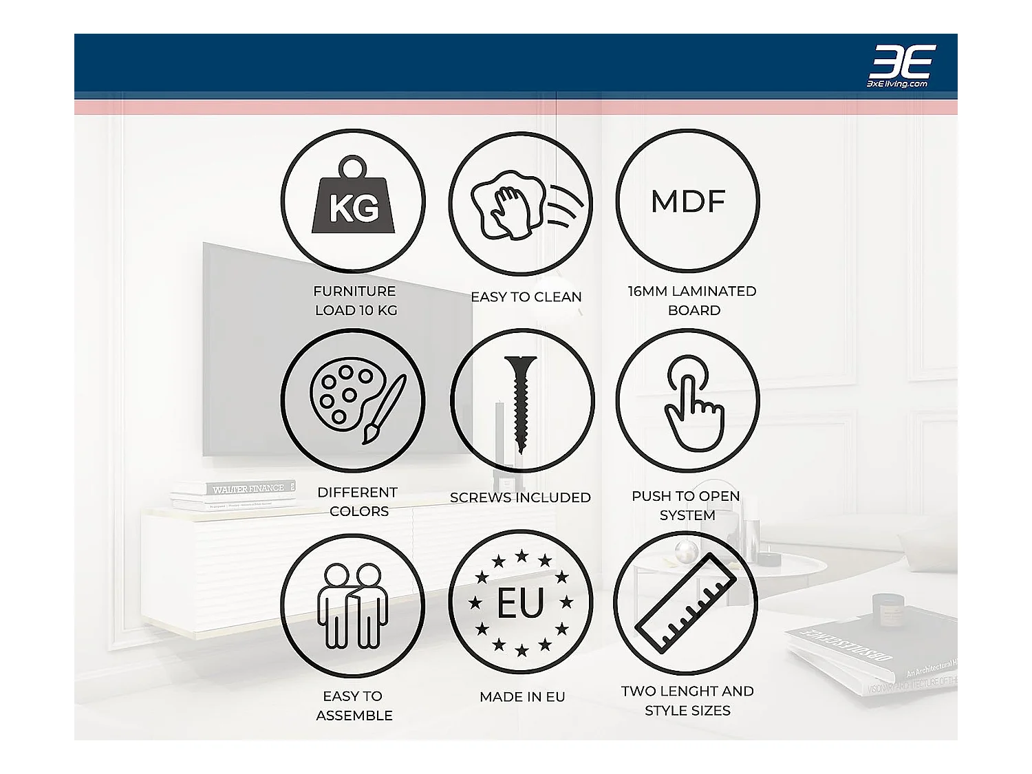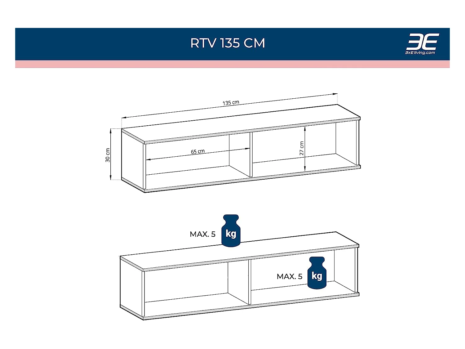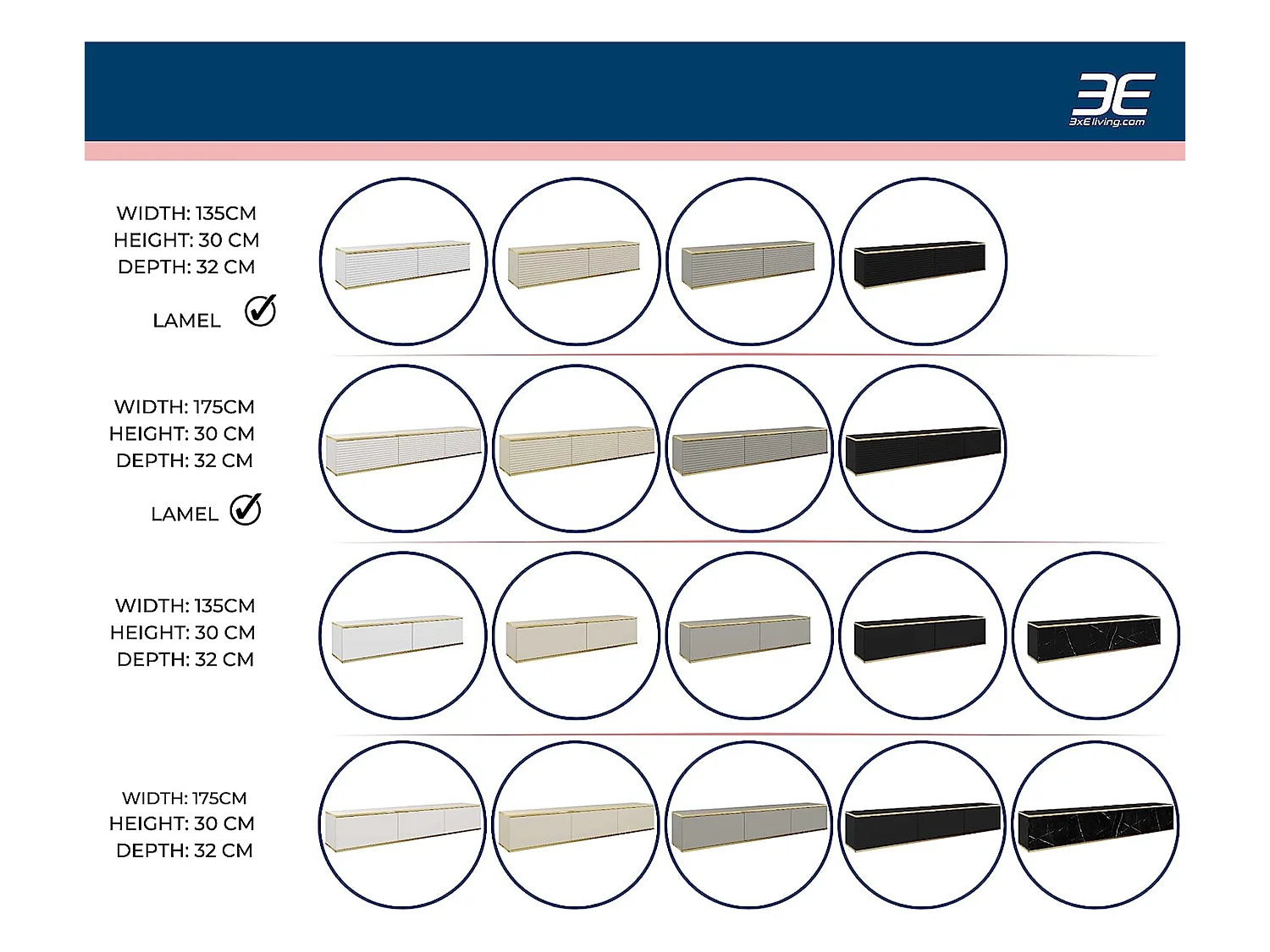 TV-Schrank mit grauen Lamellen, 135 x 30 x 32 cm, Push-to-Open