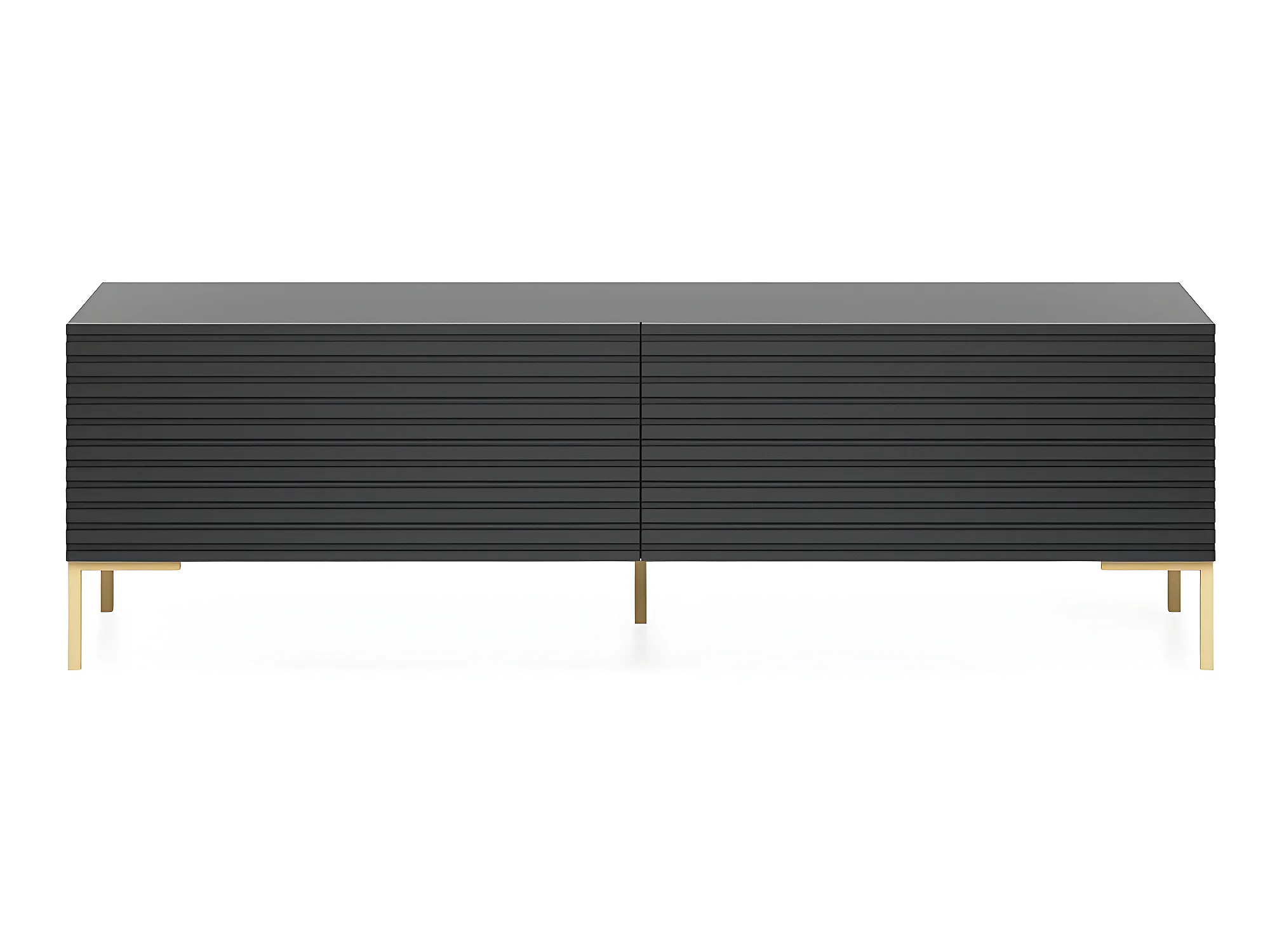 TV-Schrank mit Lamellenfronten - 140 cm - Schwarz mit goldenen Beinen - Lammelo