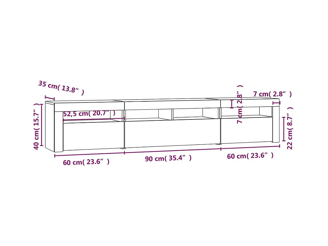 TV-Schrank mit LED-Leuchten Betongrau 210x35x40 cm