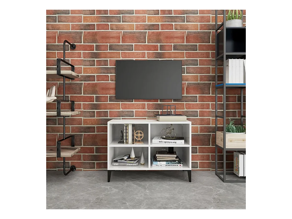 TV-Schrank mit Metallbeinen Hochglanz-Weiß 69,5x30x50cm