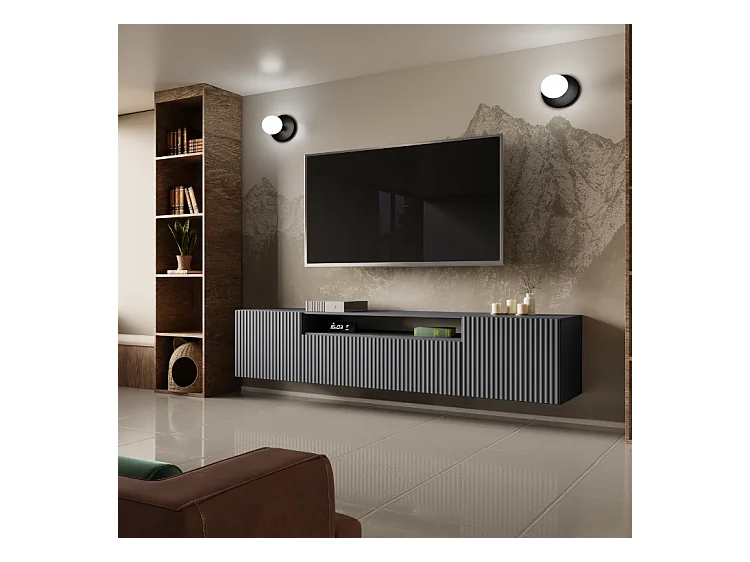 TV-Schrank Neo, Wohnwand, Lowboard, TV Ständer, Wohnwand, Wohnzimmer, TV Board, Fernseher, Highboard, Fernsehschrank, 200 cm, 3-türig, graphit