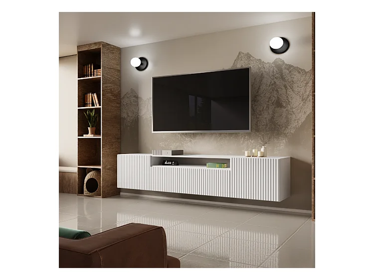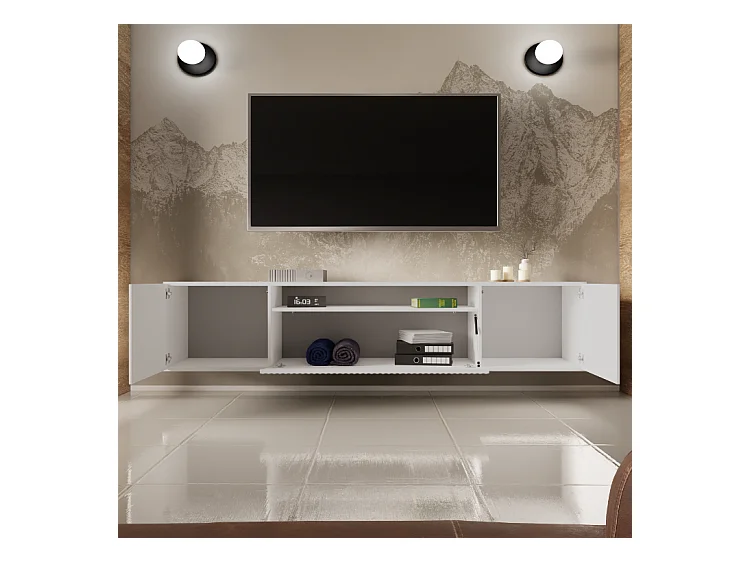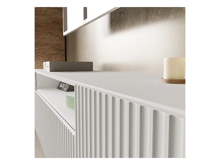 TV-Schrank Neo, Wohnwand, Lowboard, TV Ständer, Wohnwand, Wohnzimmer, TV Board, Fernseher, Highboard, Fernsehschrank, 200 cm, 3-türig, weiß