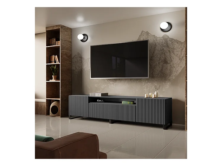 TV-Schrank Neo III, Lowboard, Wohnwand, Wohnzimmer, TV Board, Fernseher, Highboard, Fernsehschrank, TV lowboard, 200 cm, 3-türig, graphit, grau
