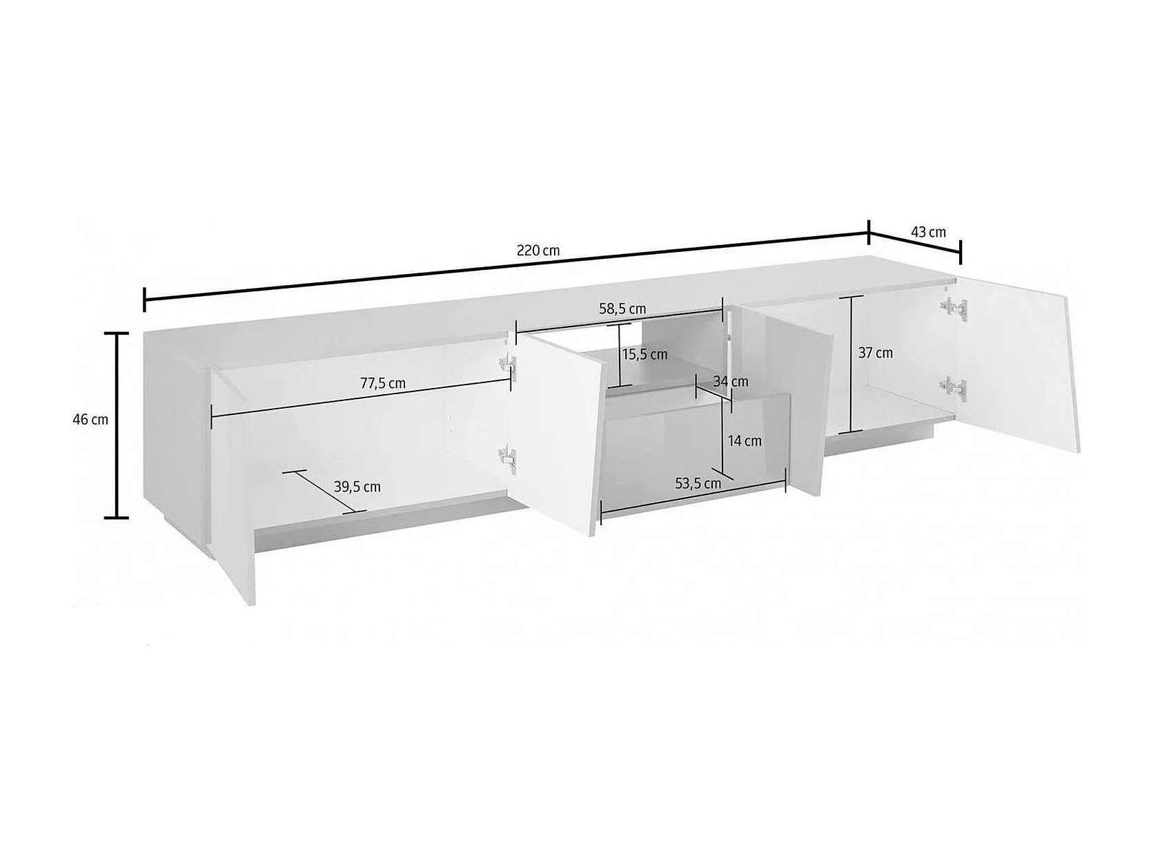 TV-Schrank Paul, niedriges Wohnzimmer-Sideboard, Fernsehständer-Basis, 100 % Made in Italy, 220 x 43 x 46 cm, Schiefer,
