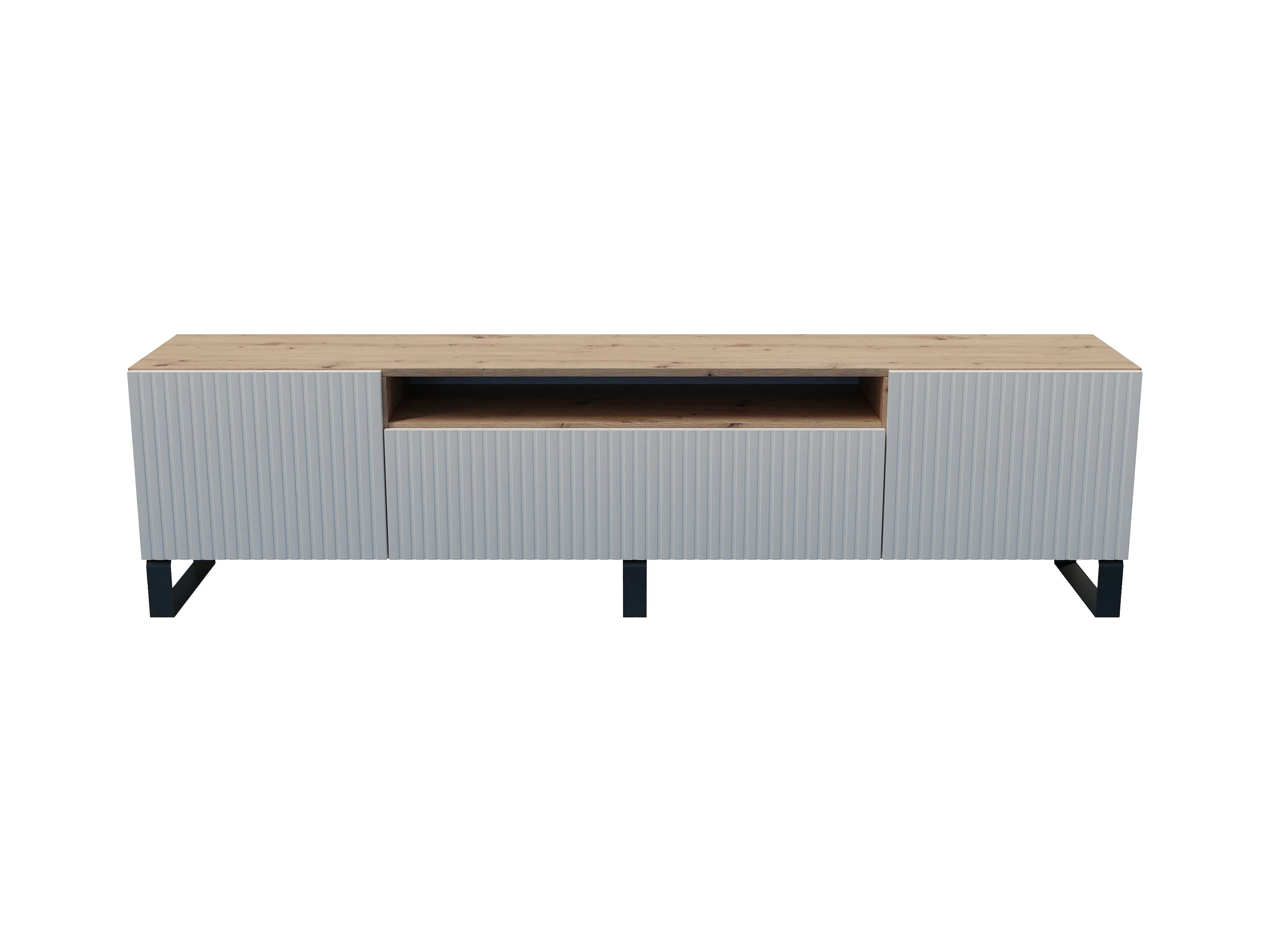 TV-Schrank Rico III Fernsehschrank TV-Lowboard 200 cm dreitürig Wohnzimmer Push-To-Open Funktion vertikal gefräste Fronten (Farbe: Eiche artisan, weiß)